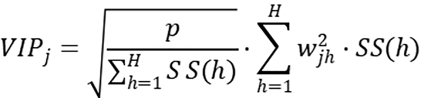 where P represents the total number of metabolites, H denotes the number of principal components included in the model, Wjh refers to the weight of the jth metabolite in the hth principal component, and SS(h) indicates the sum of squares of the hth principal component.