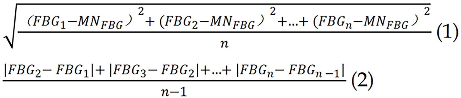 Indicators of long-term variability in FBG included the standard deviation of FBG, the average successive variability, and the coefficient of variation. These metrics were calculated based on multiple FBG assessments conducted throughout the nursing intervention period[20]. The calculation formulas were as follows. Among them, MN refers to the mean.