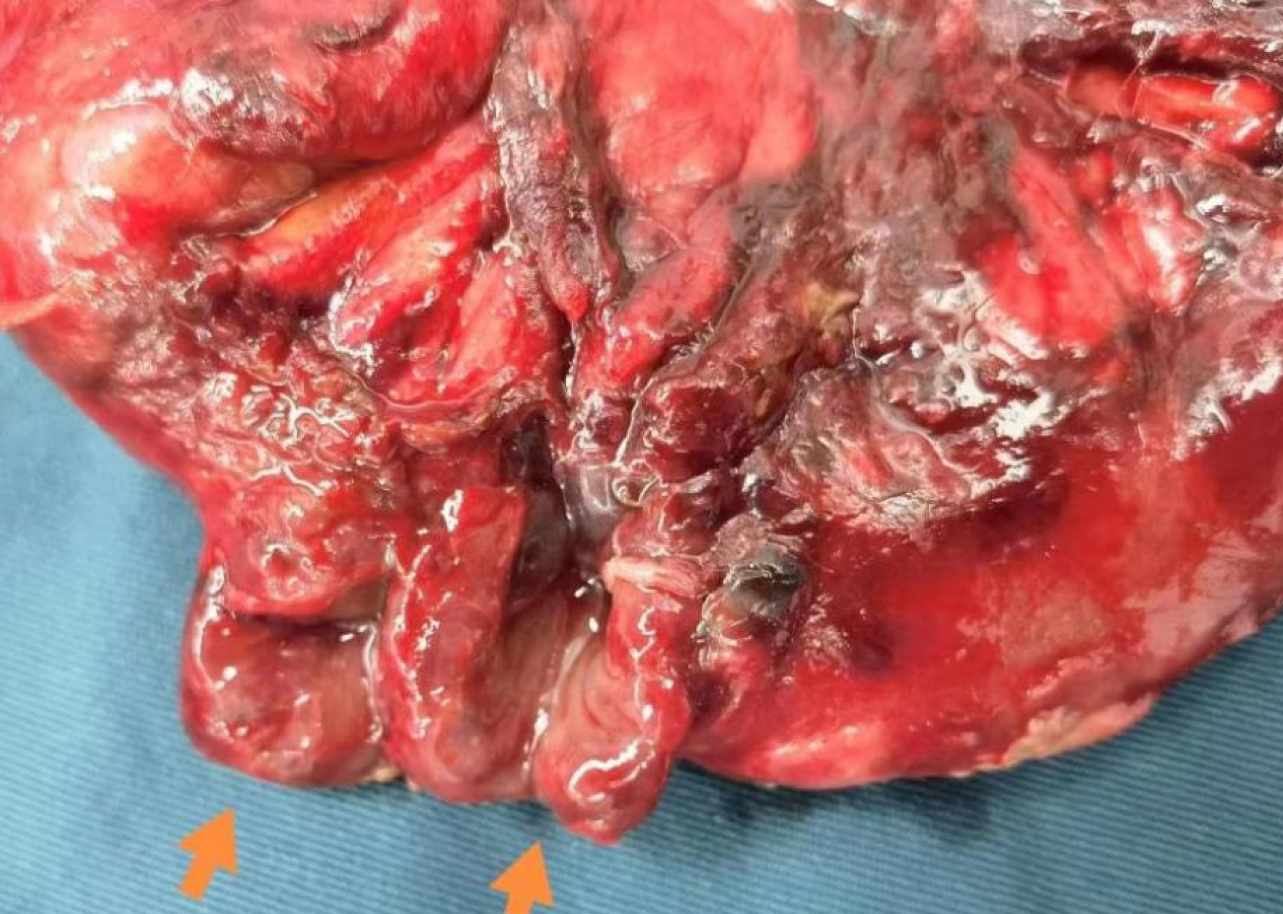 Figure 2 Two adjacent small intestine ruptures with a diameter of approximately 1.