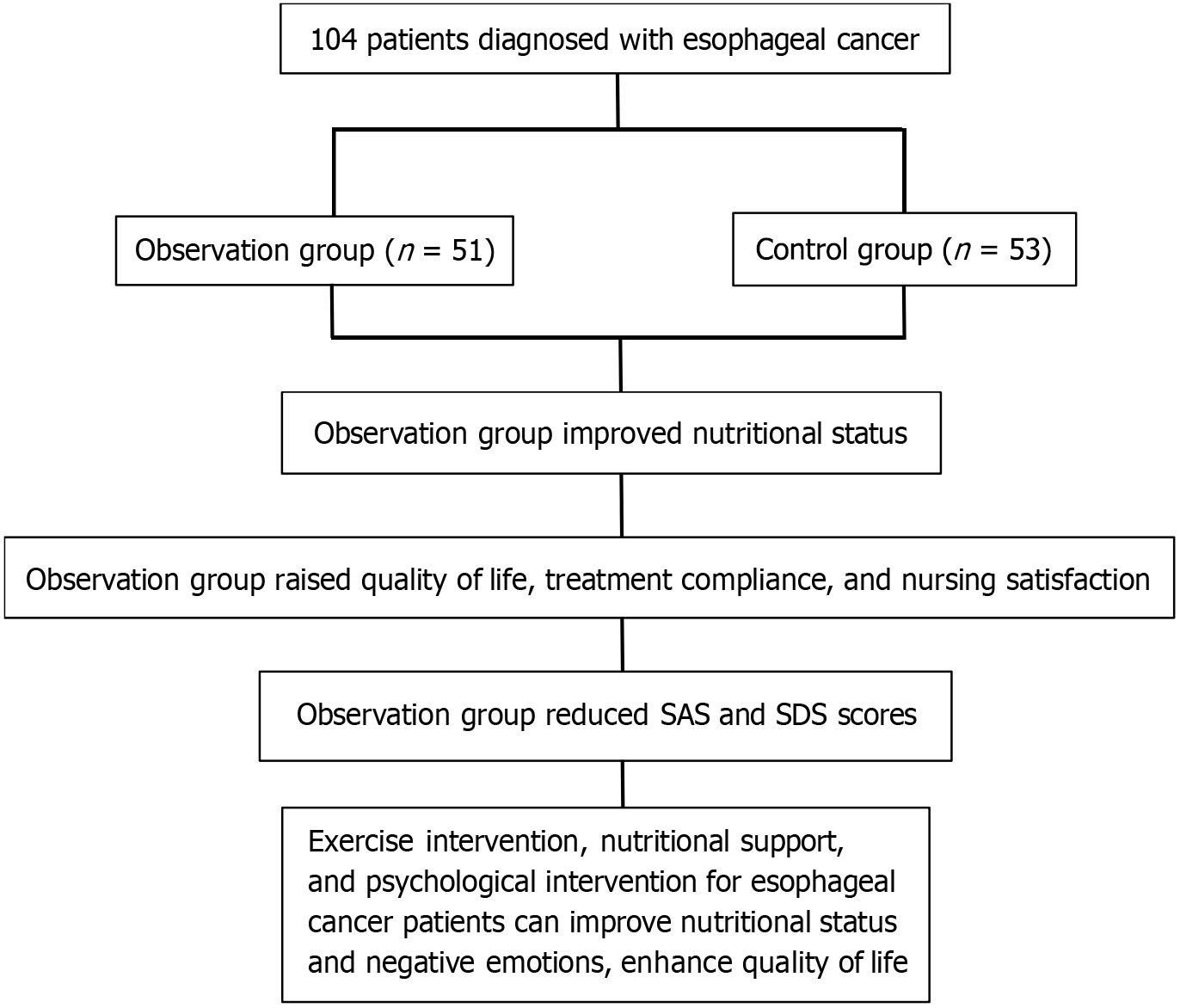 - Citation: Tang SH, Cao QQ, Xu XW, Feng MJ, Lu QJ, Sun J, Zhong K. Effect of exercise, nutritional, and psychological interventions on postoperative nutritional and mental status of patients with esophageal cancer. World J Gastrointest Surg 2025; 17(11): 111233