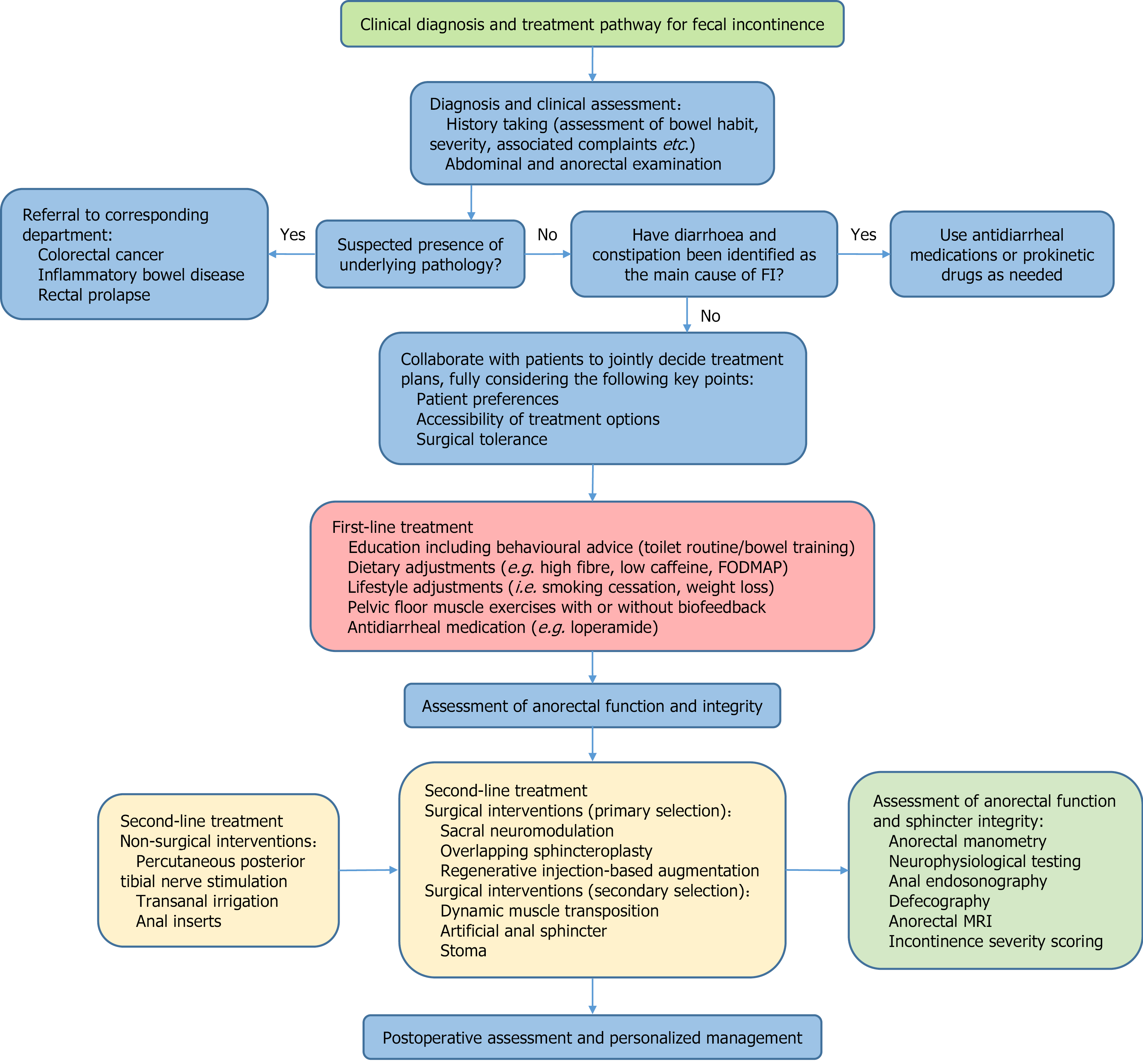 FODMAP: Fermentable oligosaccharides, disaccharides, monosaccharides, and polyols; FI: Fecal incontinence; MRI: Magnetic resonance imaging.
