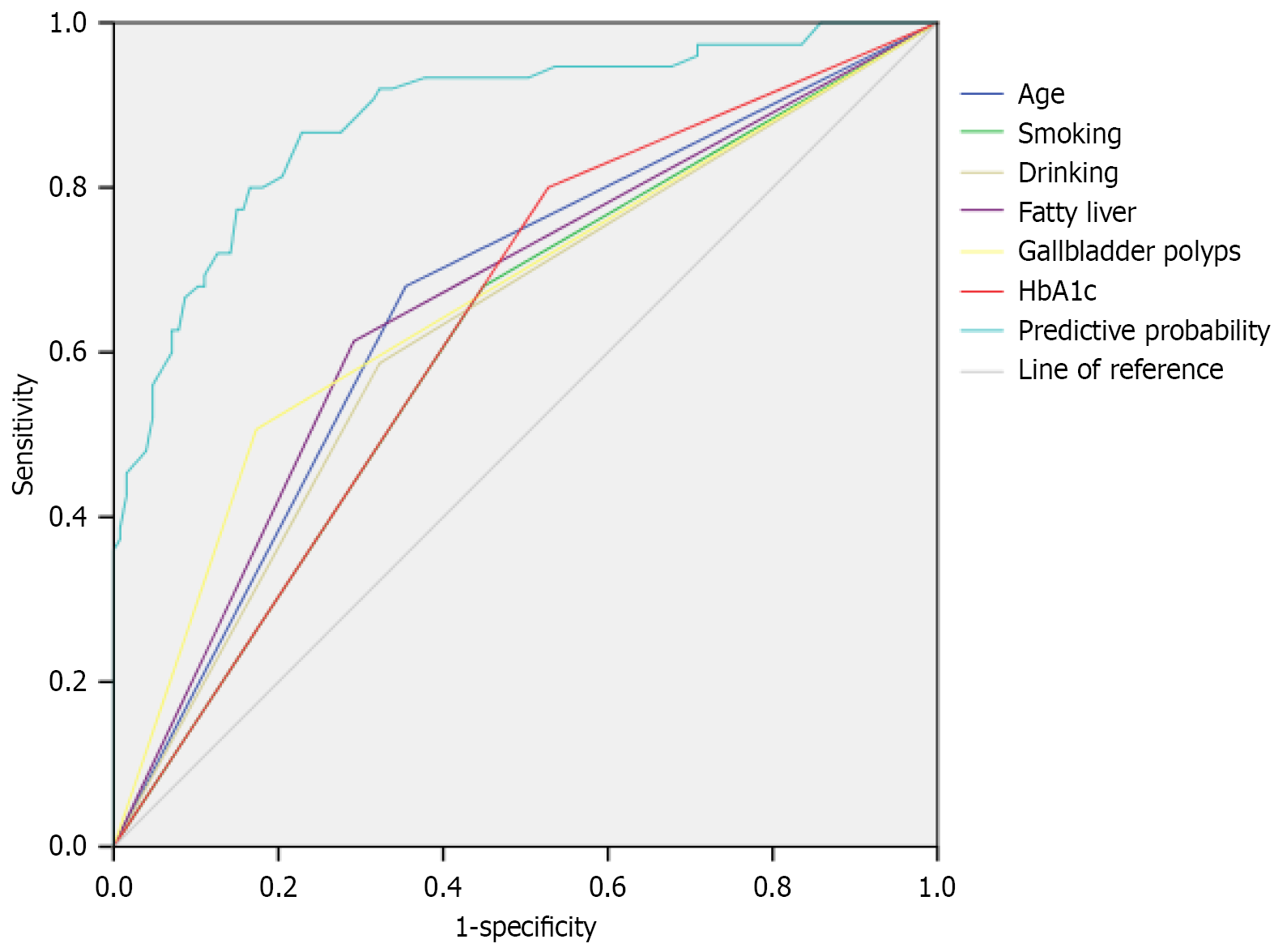 Figure 2 Receiver operating characteristic curves for risk factors associated with colorectal adenomatous polyps.