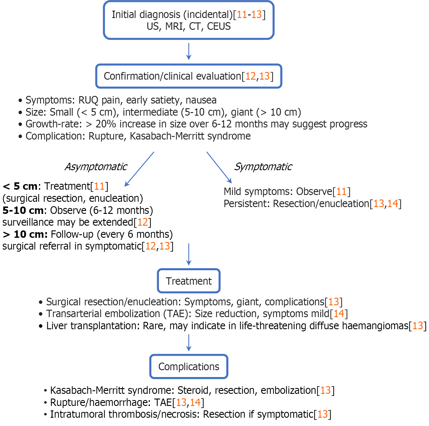 Figure 2 Hepatic haemangioma management algorithm.