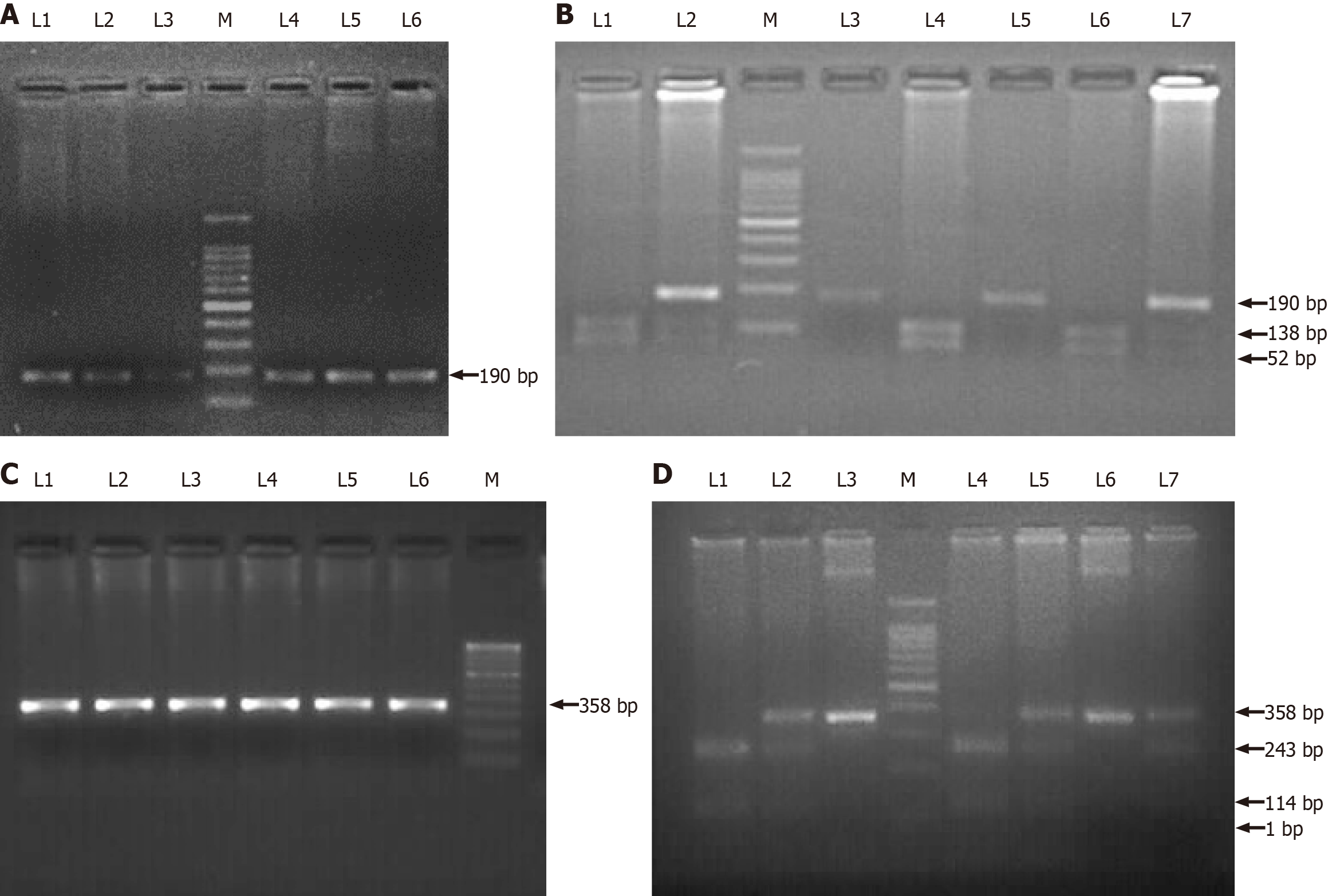 Figure 1 The polymerase chain reaction and digested products were separated on 2% and 3% agarose gels, stained with EtBr, and documented with a gel documentation system.