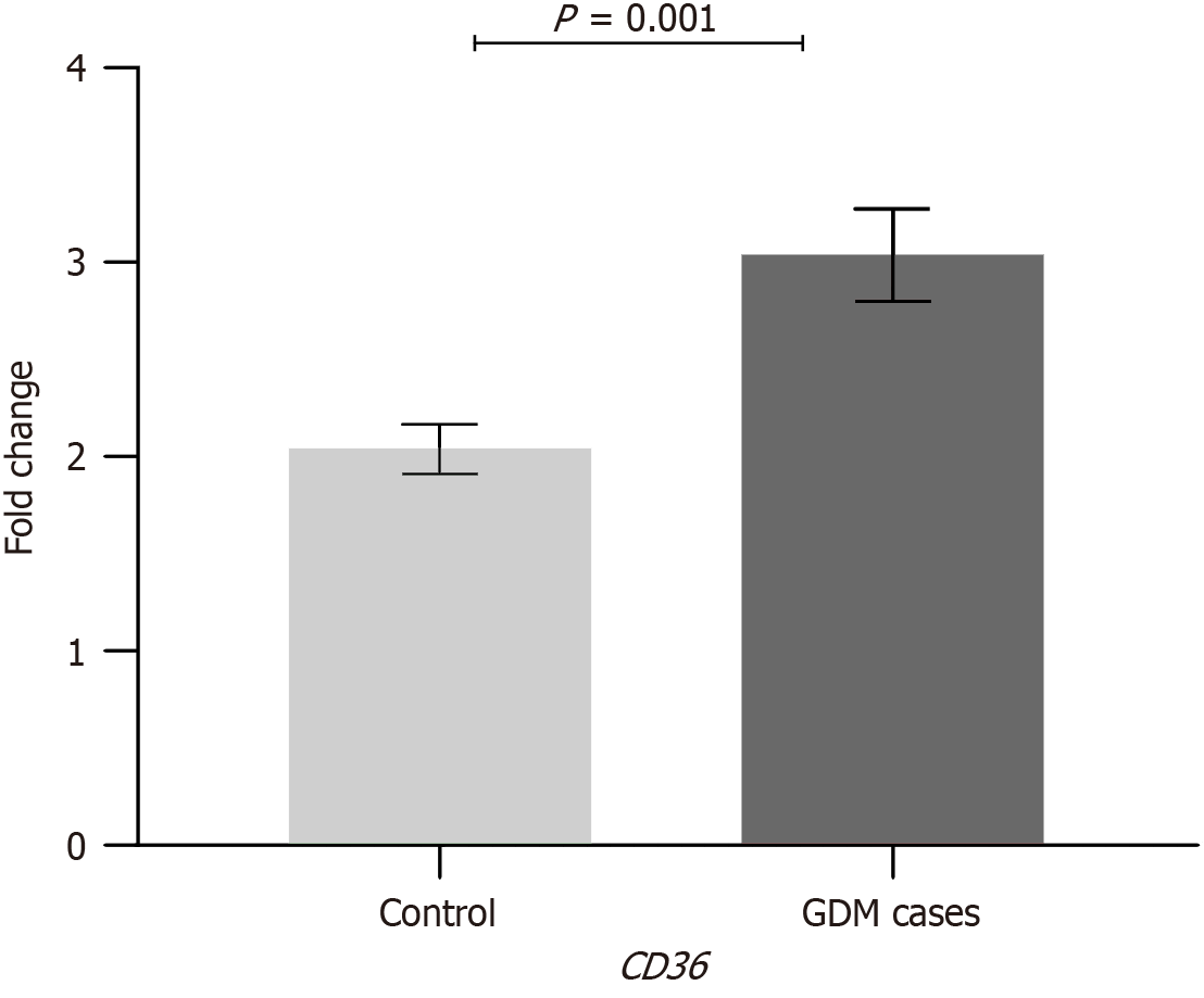 Figure 2 CD36 gene expression in controls and gestational diabetes mellitus cases.