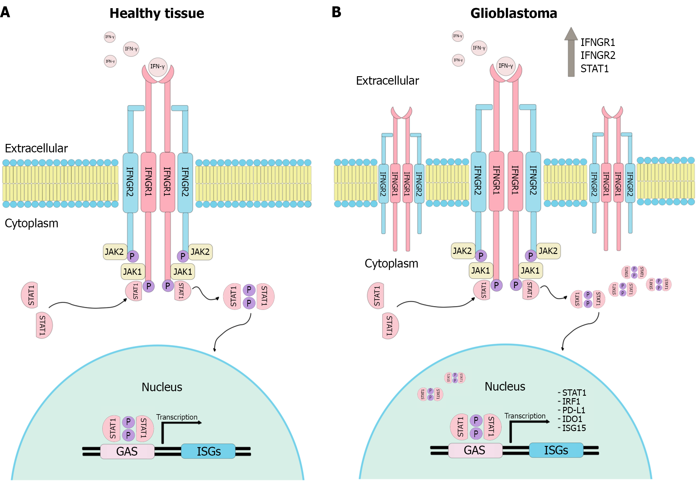 Figure 1 Interferon-gamma pathway in normal tissue and glioblastoma.