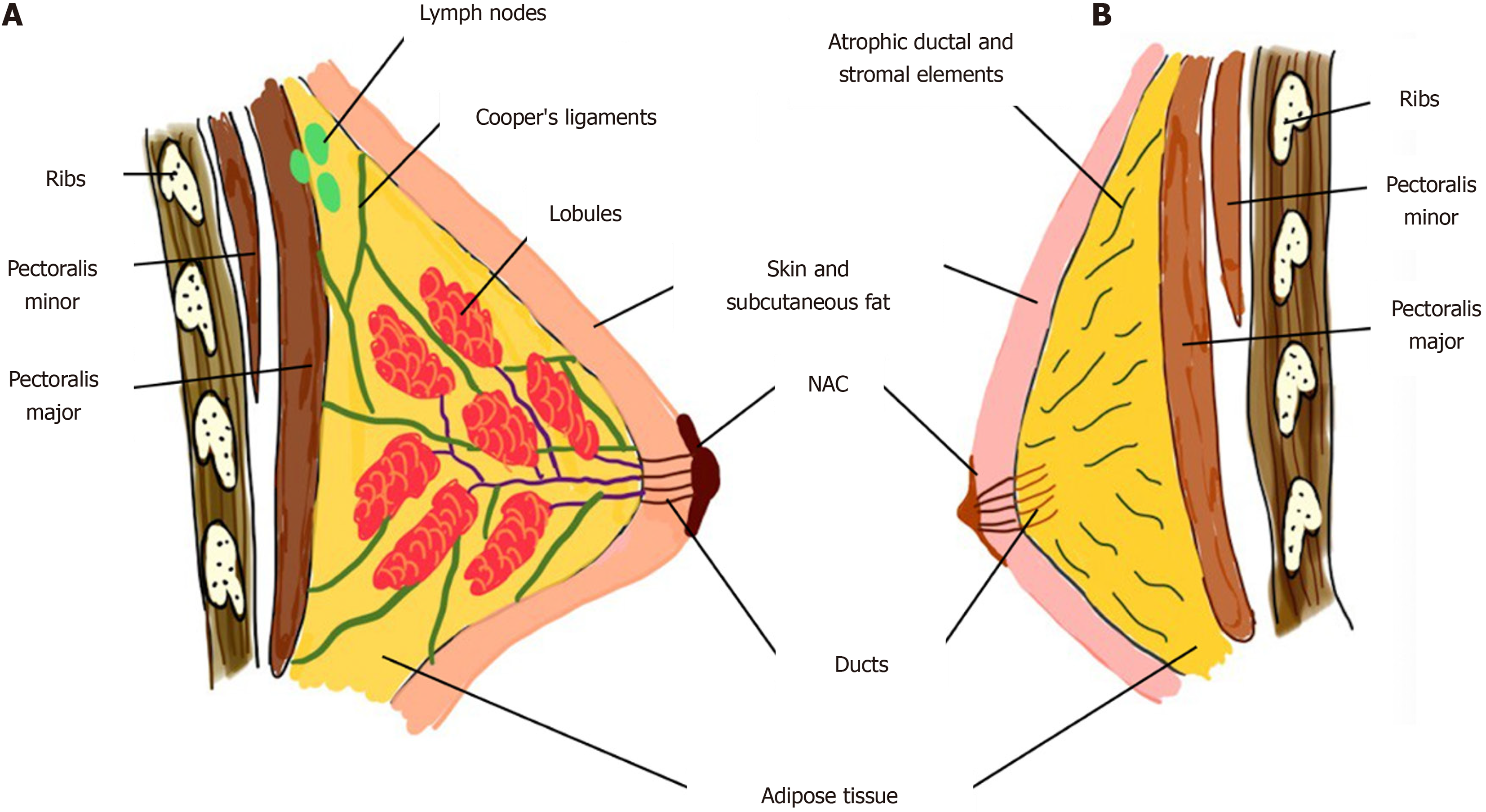 Figure 1 Diagrammatic representation of male vs female breast anatomy.