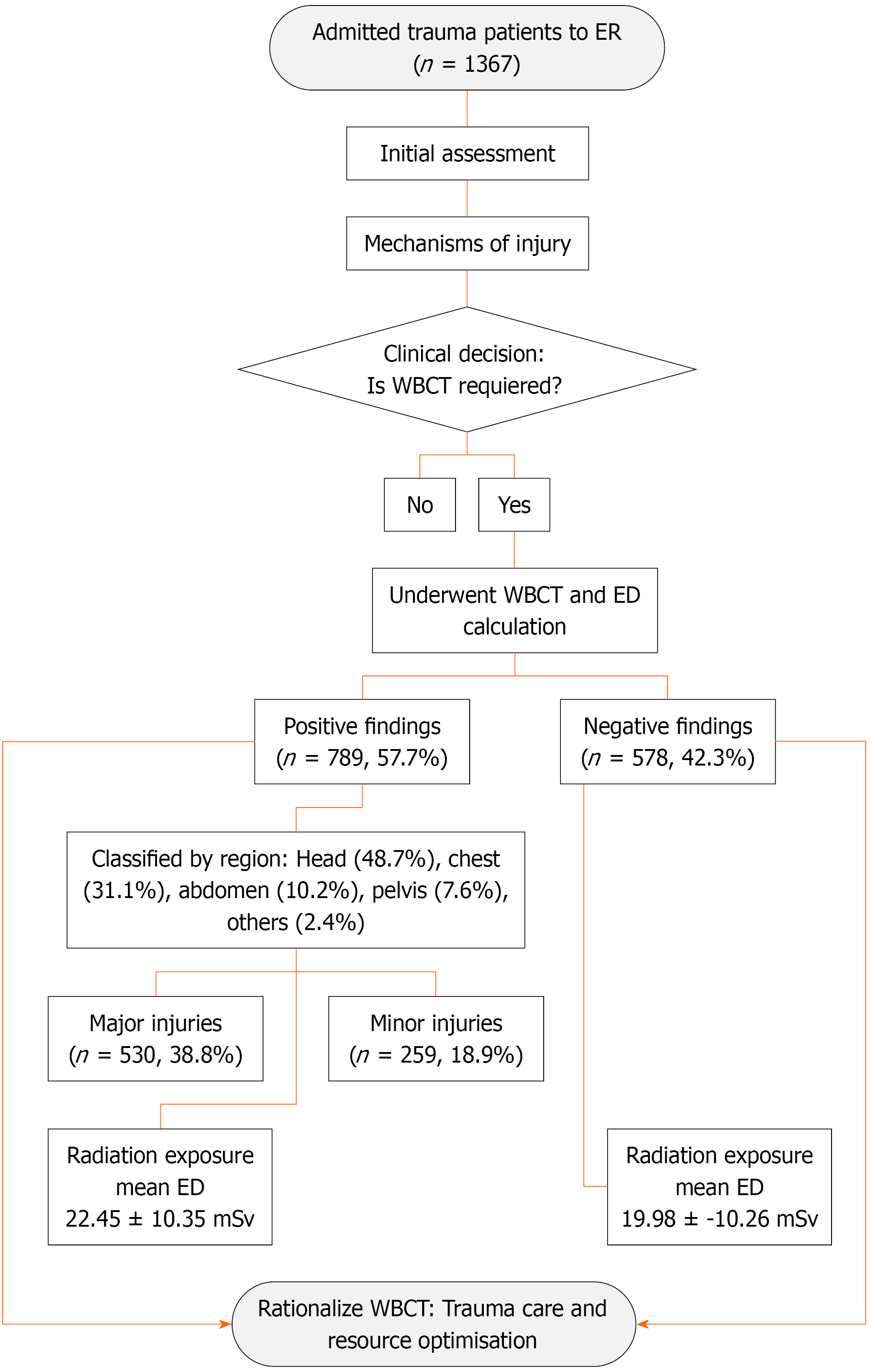ED: Effective dose; ER: Emergency room; WBCT: Whole-body computed tomography.