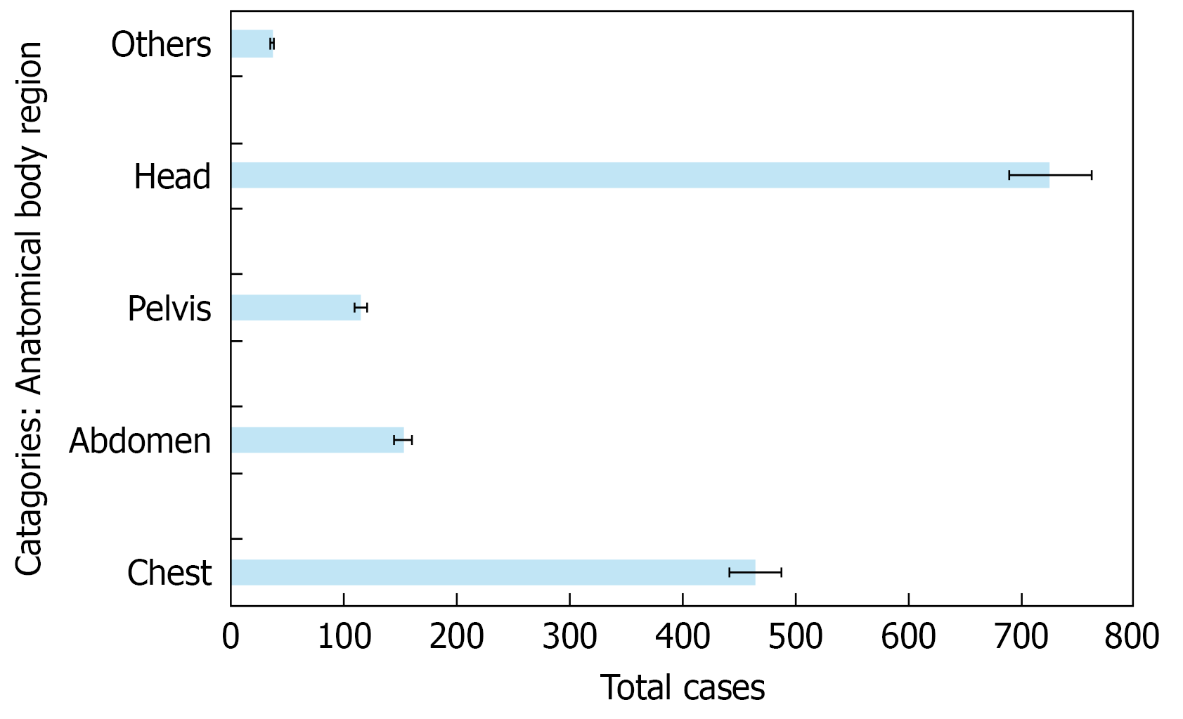 Figure 3 Anatomical body regions affected according to whole-body computed tomography.