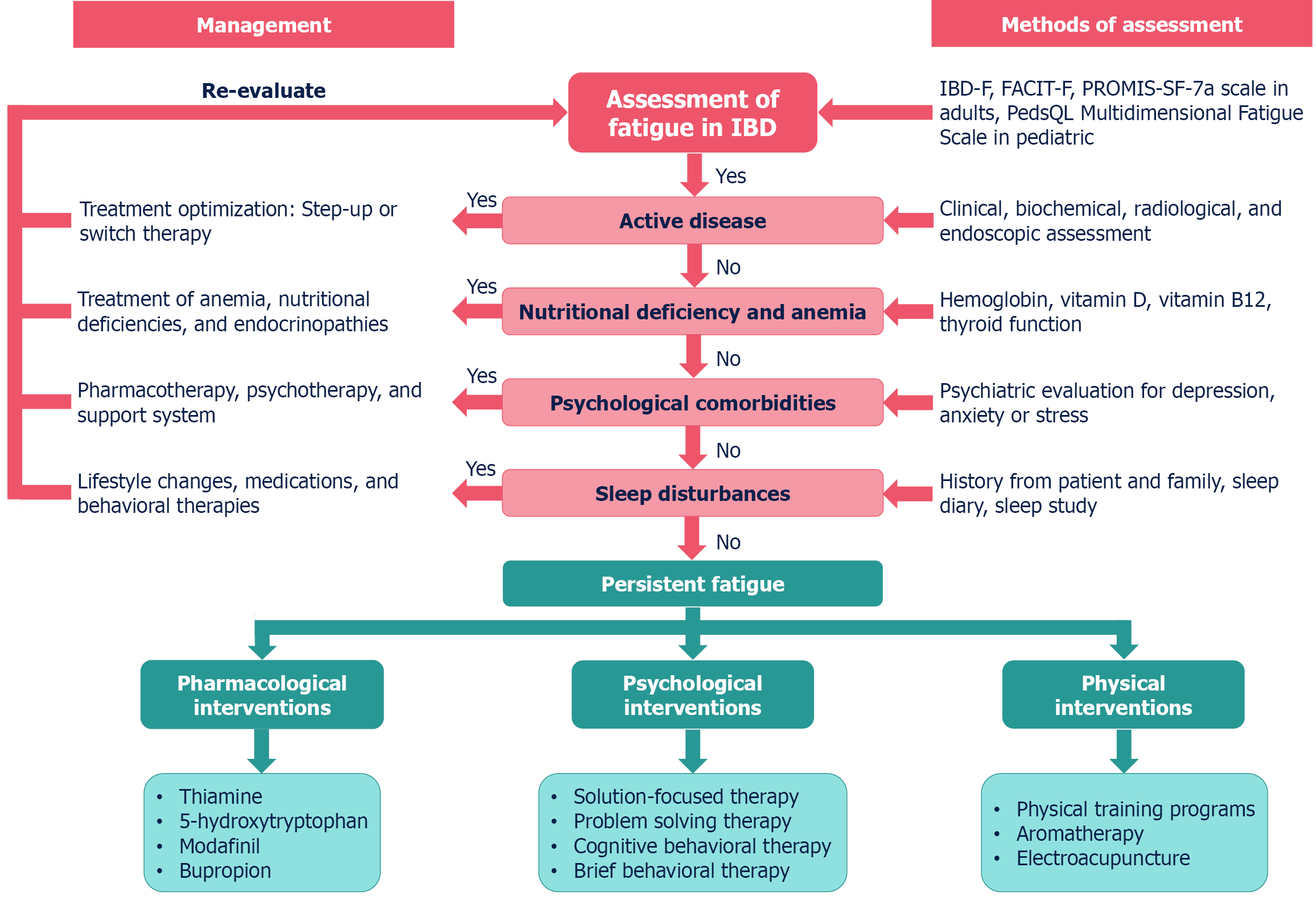 Figure 3 Flow diagram summarizing the approach to the assessment and management of fatigue in patients with inflammatory bowel disease.