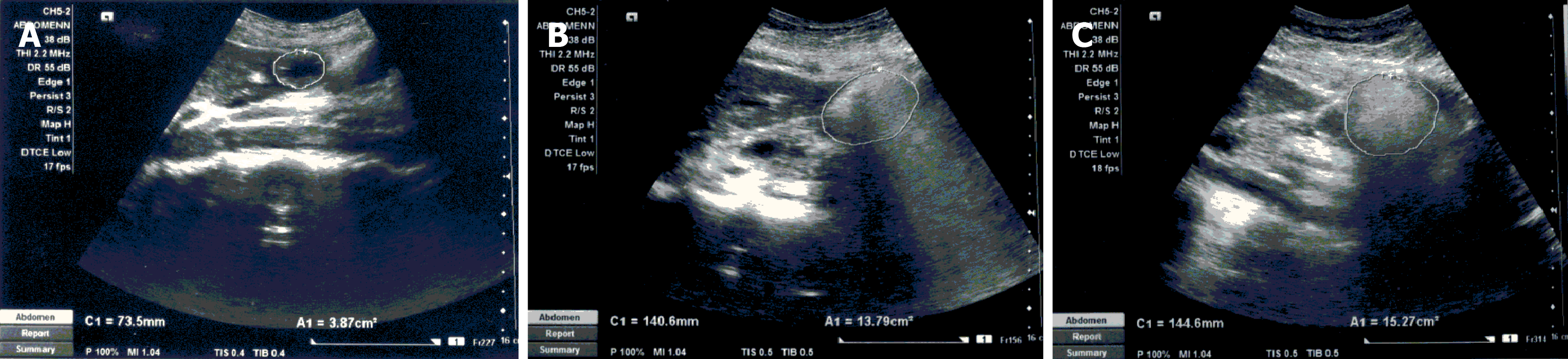 Real-time ultrasonography is a simple, non-invasive and valid method for assessing gastric emptying and antral motility after either a liquid or a solid meal[2,3]. Yet, the methods currently employed to assess solid gastric emptying are based on the time taken by a solid meal to exit the stomach and are time-consuming, taking up to 4 hours[2], which makes it difficult to be used as a routine diagnostic test, especially in children. Therefore, a reduction of the time spent on the gastric emptying assessment test would be invaluable in clinical practice in terms of convenience to the patients and laboratory staff, as well as in research, which will significantly improve the participation of subjects. In addition, the preparation of a solid test meal is cumbersome in laboratory settings.