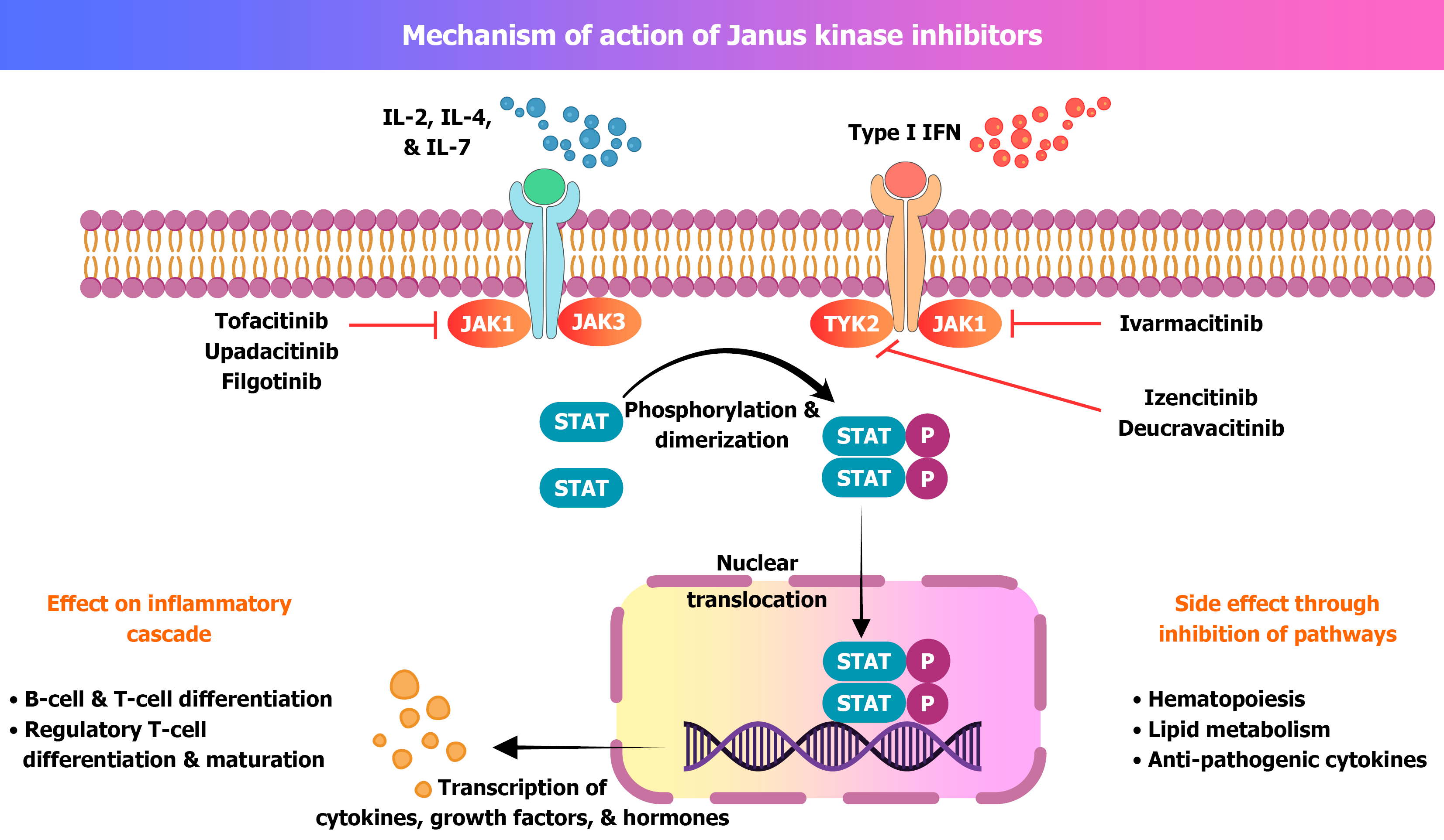 Figure 1 Mechanism of action of various Janus kinase inhibitors and their downstream effects.