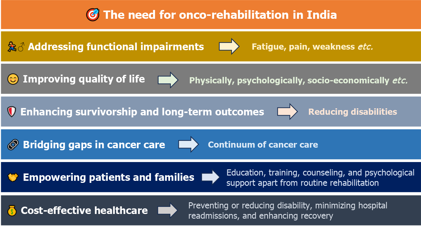- Citation: Swarnakar R, Yadav SL. Cancer rehabilitation in India: Current status, scope, and future perspectives. World J Clin Oncol 2025; 16(10): 110531