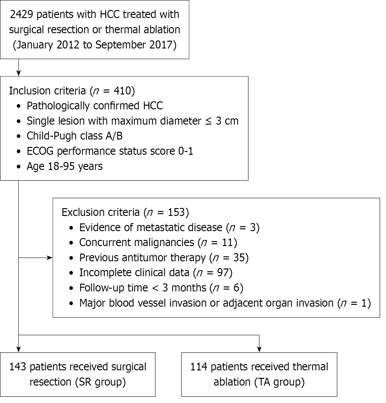 HCC: Hepatocellular carcinoma; ECOG: Eastern Cooperative Oncology Group; SR: Surgical resection; TA: Thermal ablation.