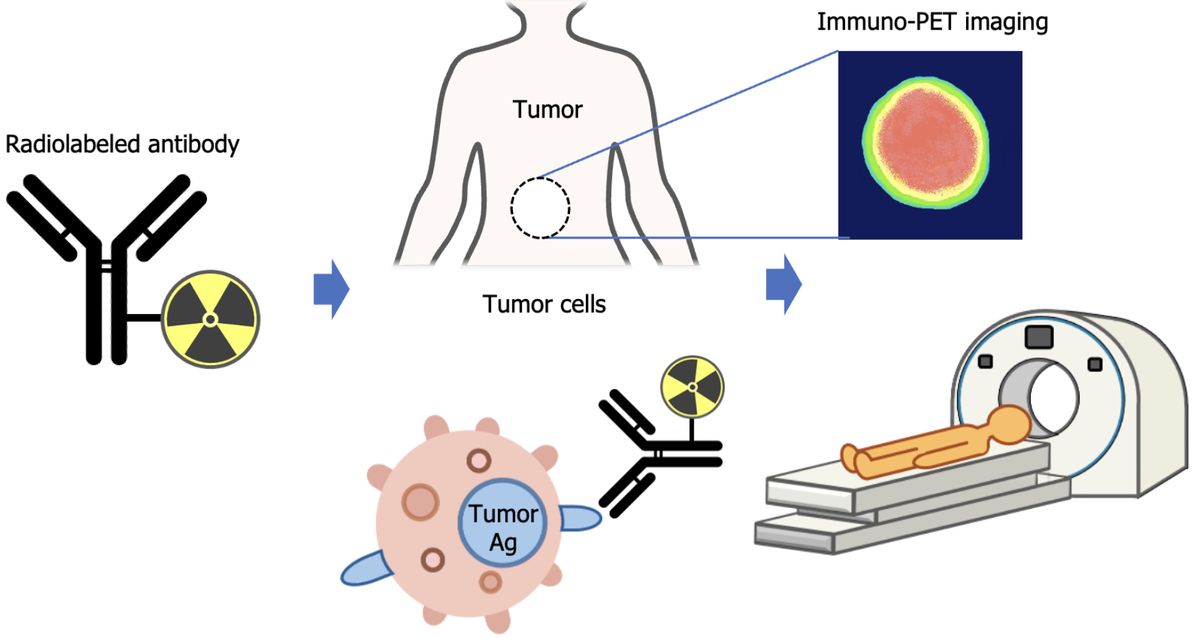 Figure 1 Concept of immuno-positron emission tomography using radiolabeled antibody for tumor detection and imaging.