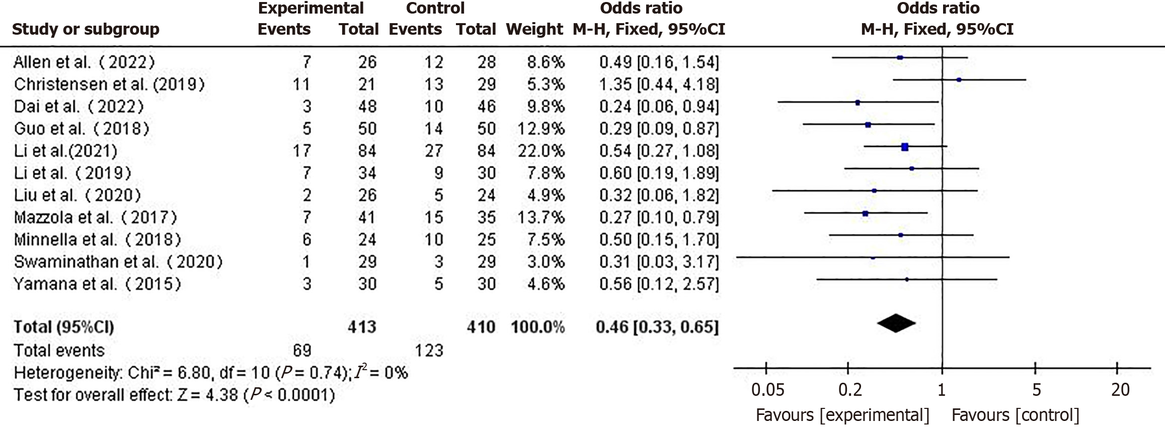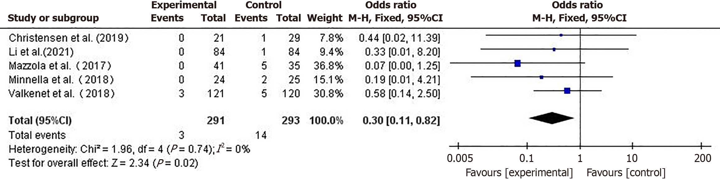 Figure 3 Forest plot comparing postoperative complication rates between the two groups.