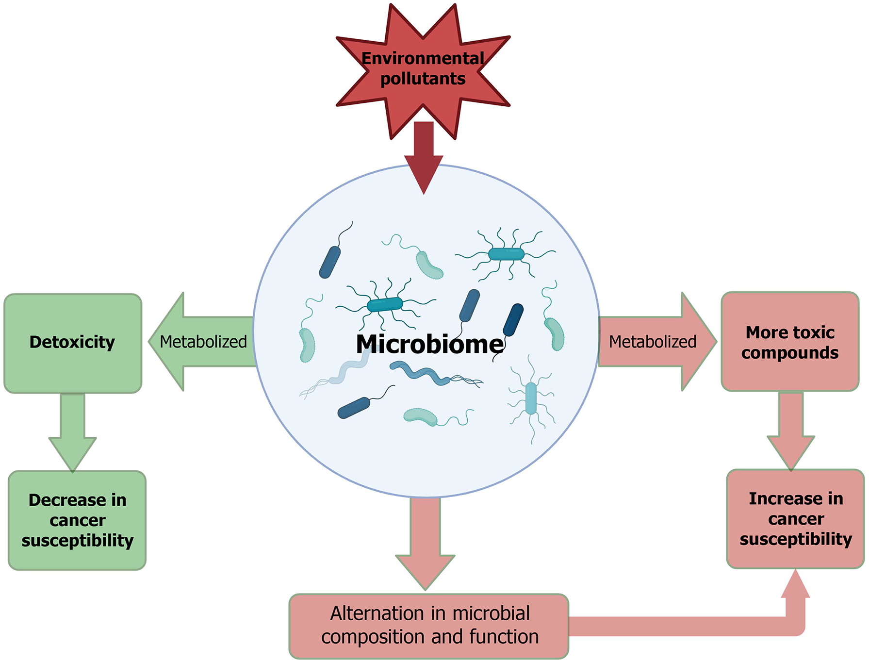 Figure 4 Bidirectional interactions between the microbiome and environmental pollutants and their contribution to cancer susceptibility.