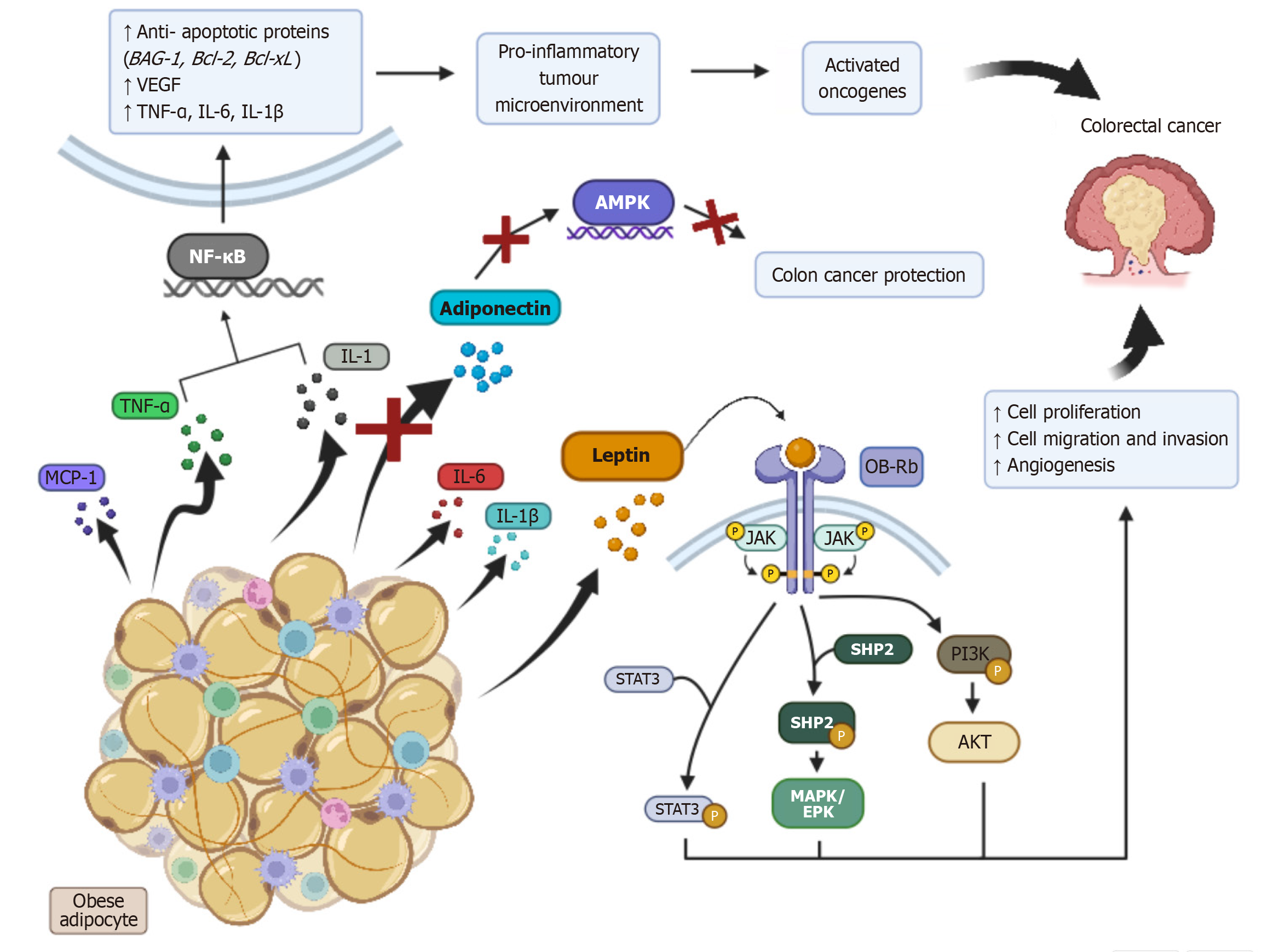 Figure 4 Diagram showing biological mechanisms of obesity-induced inflammatory dysregulation and colorectal cancer development.