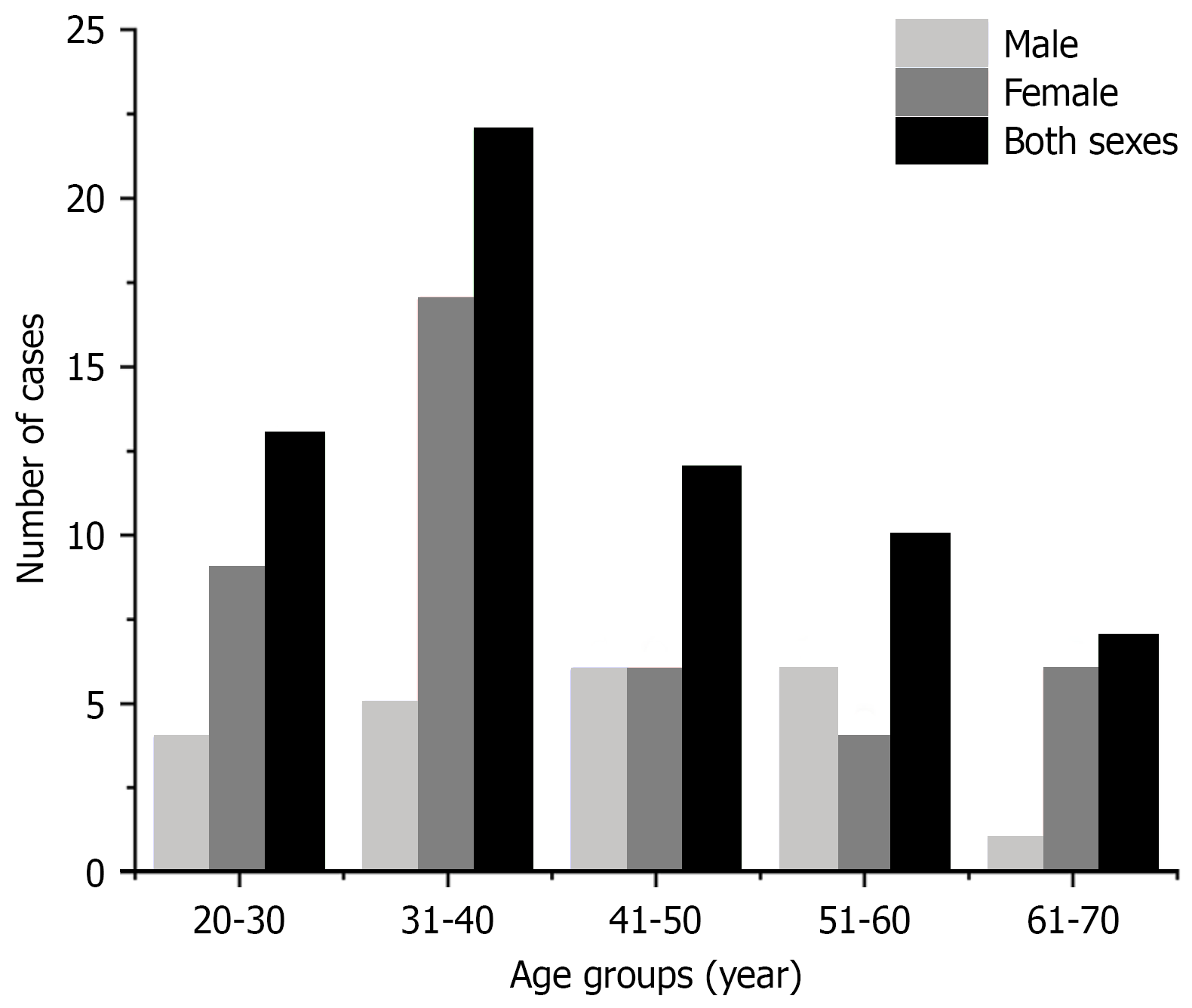 Figure 1 Age-sex distribution of tumour patients.