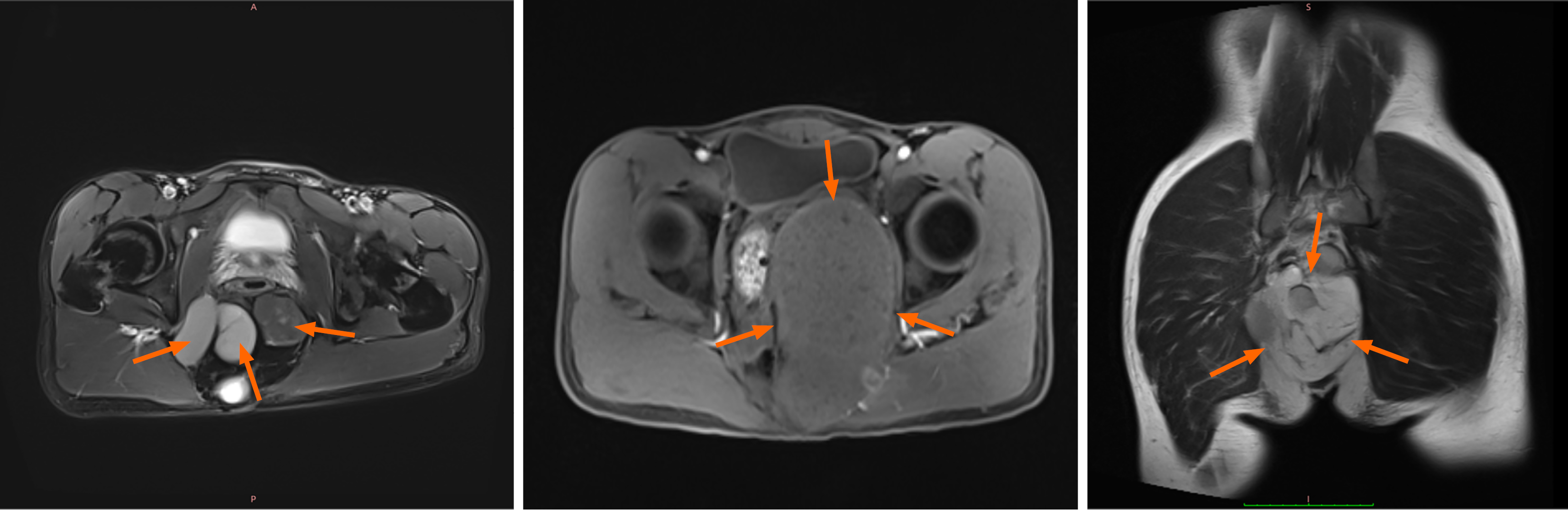 The location of the tumor is indicated by the orange arrow.