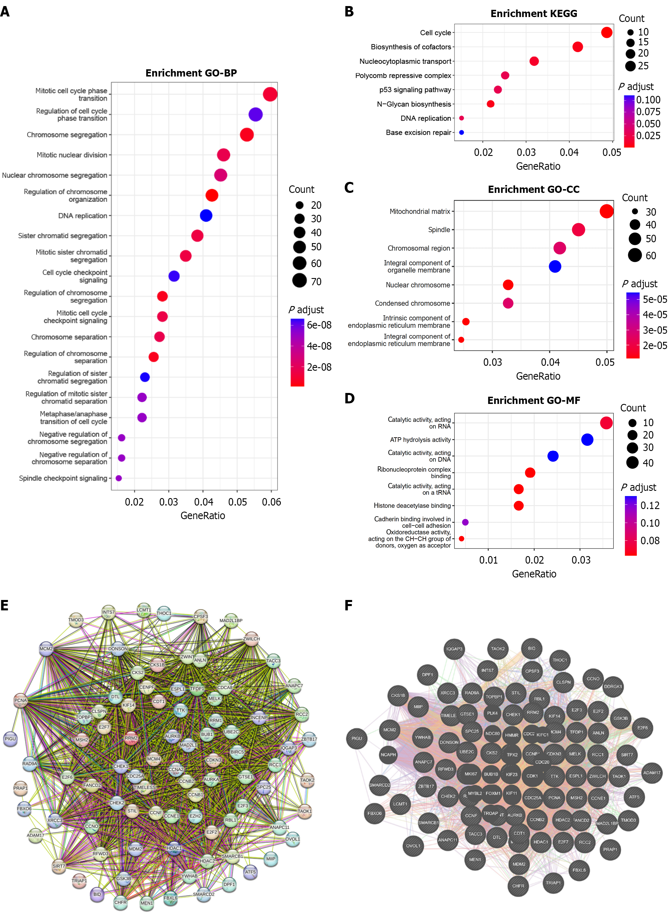 Figure 11 Enrichment analysis of PIGU differentially co-expressed genes and protein-protein interaction network analysis.