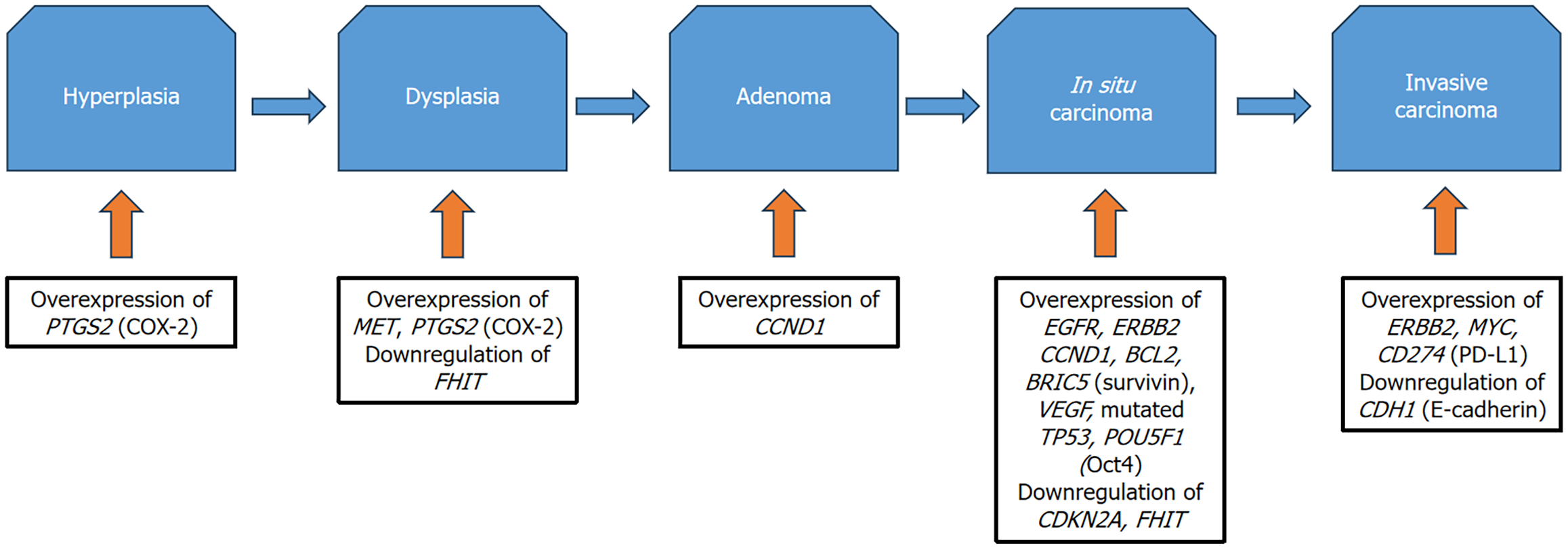Figure 1 Major dysregulated gene expressions contributing in histopathological progression of gallbladder cancer.