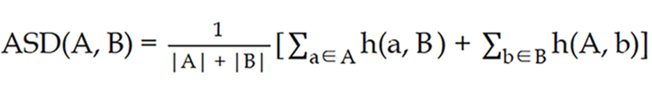Where A and B represent the pre- and posttreatment CTVs, respectively; the h (a, B) represents the minimum distance from a point a on contour A to contour B; the h (A, b) represents the minimum distance from a point b on contour B to contour A.