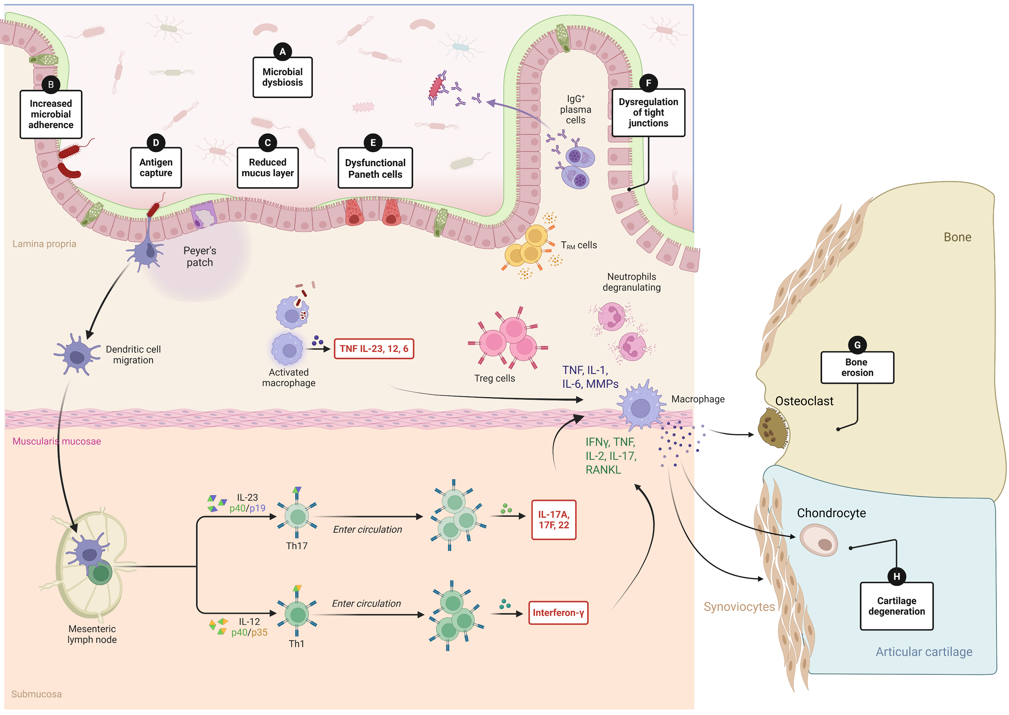 Figure 2 Role of gut dysbiosis and bony erosion and cartilage degeneration noted in spondyloarthritis.