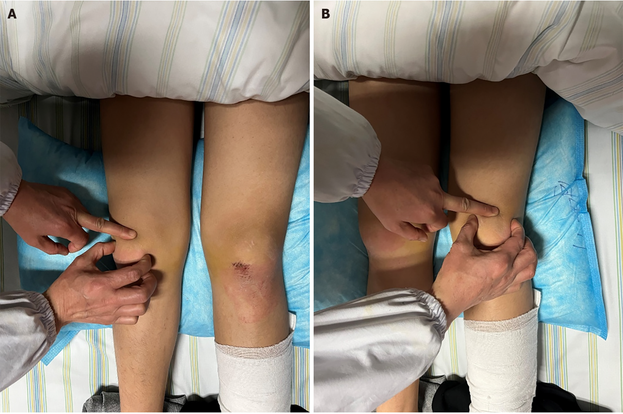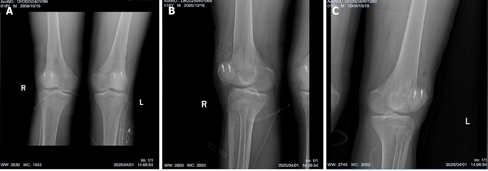 - Citation: He WP, Ren CM, Luo F, Chen L, Wang WT, Qiu BT, Zhang XC, Chen HT. Bilateral sleeve fracture of the superior pole of the patella in a healthy adult: A case report. World J Orthop 2025; 16(11): 110173