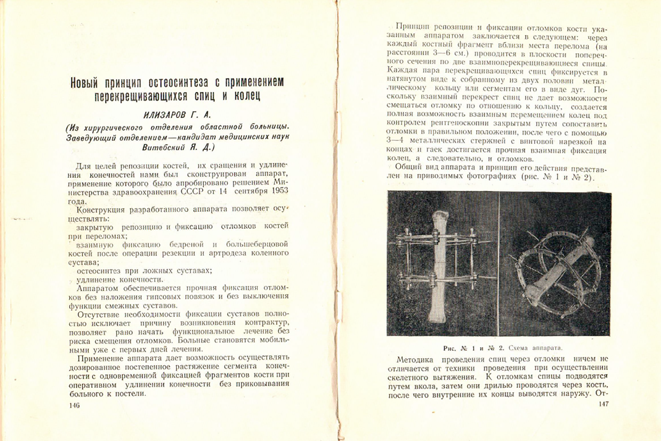 The first page of the report “New principles of osteosynthesis employing crossed wires and rings” published by Ilizarov GA in 1954 (courtesy of the Kurgan Ilizarov Center scientific library).