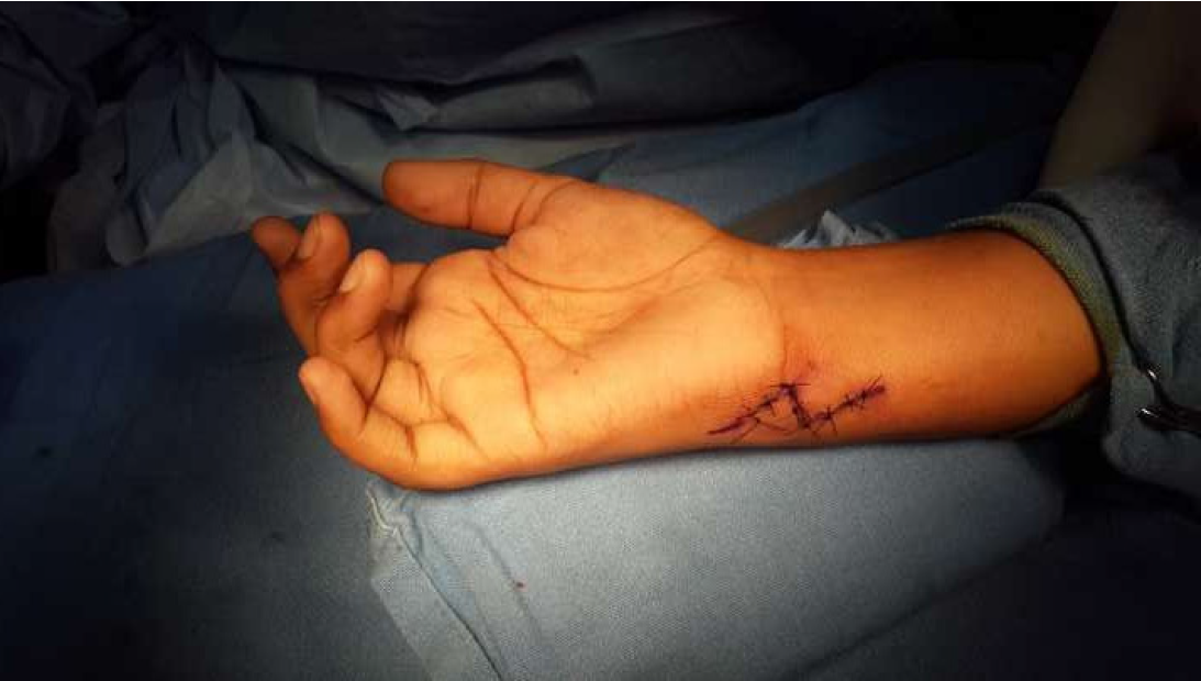 A 5 cm Bruner incision was made and centered over the flexor carpi ulnaris.