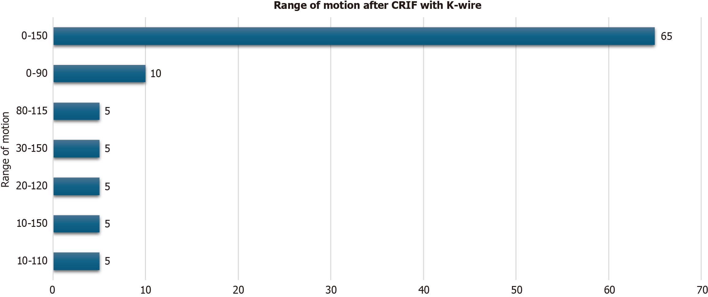 Figure 3 Range of motion after close reduction and internal fixation with K-wire (n = 20).
