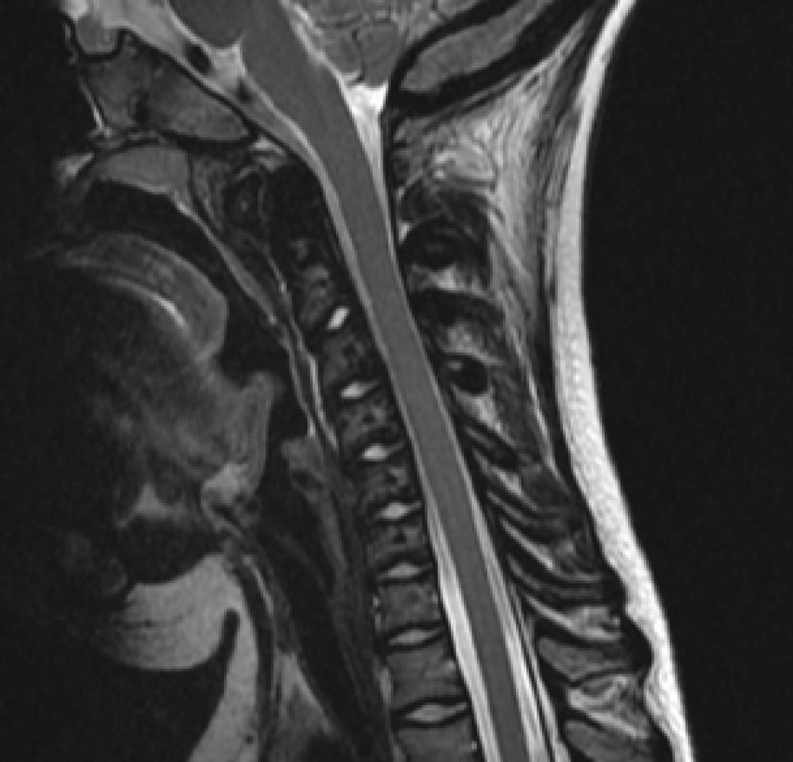 A “sandwich vertebrae” appearance (magnetic resonance imaging T2-weighted images).