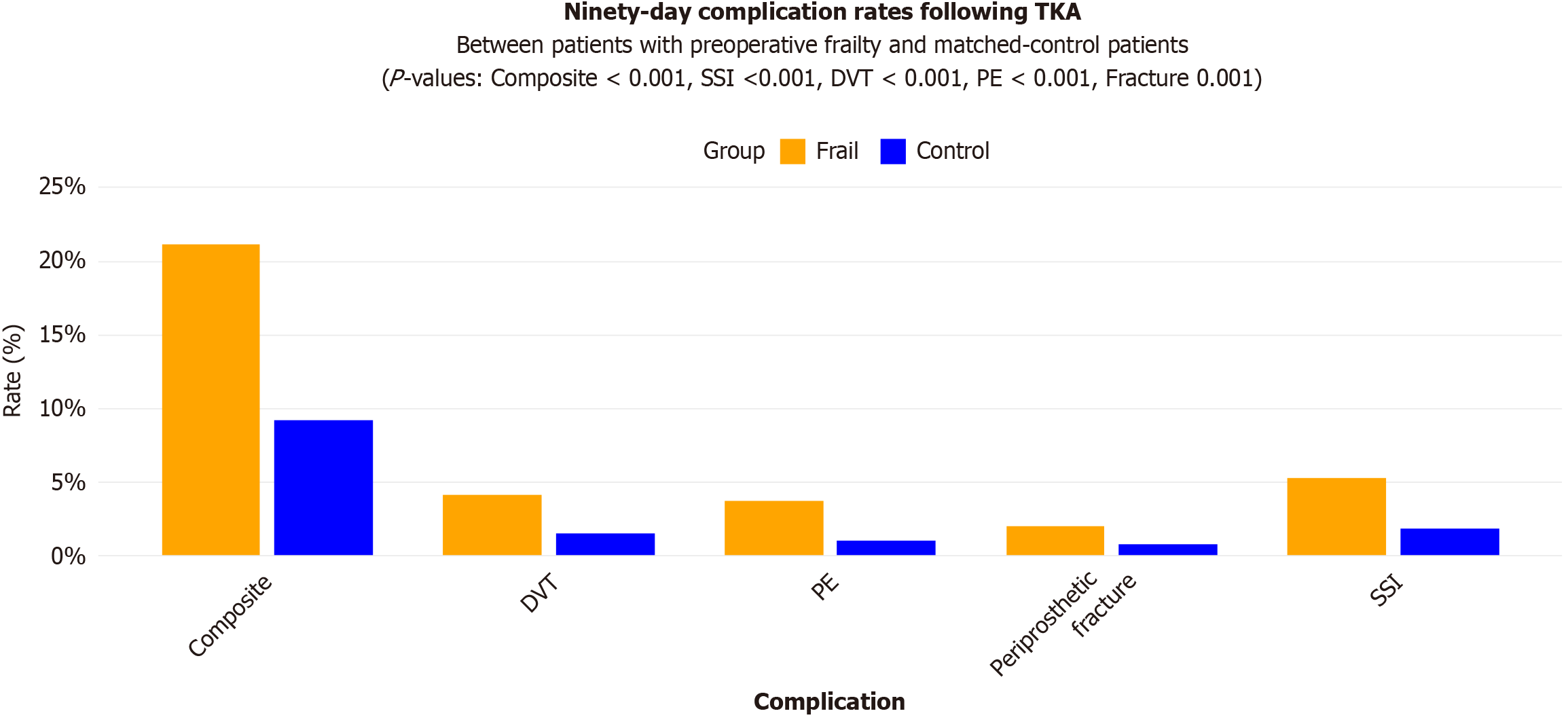 DVT: Deep vein thrombosis; PE: Pulmonary embolism; TKA: Total knee arthroplasty; SSI: Surgical site infection.
