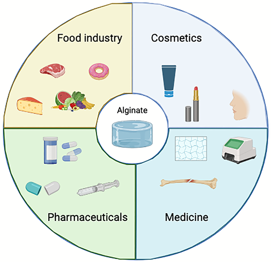 One promising approach involves using exopolysaccharides as scaffolds for repairing bone and cartilage[7]. These biocompatible and biodegradable substances mimic the extracellular matrix (ECM), providing temporary mechanical support and making them ideal for tissue engineering[8]. Alginate, in particular, has gained attention as a key material for regenerating both bone and cartilage thanks to its gelling properties (Figure 1). It is an unbranched polysaccharide consisting of two monomers: Β-D-mannuronic acid and α-L-guluronic acid. These monomers form polymer chains of different lengths via 1-4 glycosidic bonds[9,10]. Interest in using alginate as a biomaterial for bone and cartilage regeneration mainly stems from its ionotropic gelation properties[11]. Its ability to gel in the presence of calcium ions is crucial for its use in various industries, including food, pharmaceuticals, and cosmetics (Figure 2)[12]. The basic principle of ionotropic gelling involves guluronic residues in the alginate binding to Ca2+ to form an egg-box structure[13]. This enables alginate chains containing guluronic units to aggregate and form hydrogels, which can be employed as thickeners, stabilizers, emulsifiers, gelling agents, and film formers[14].