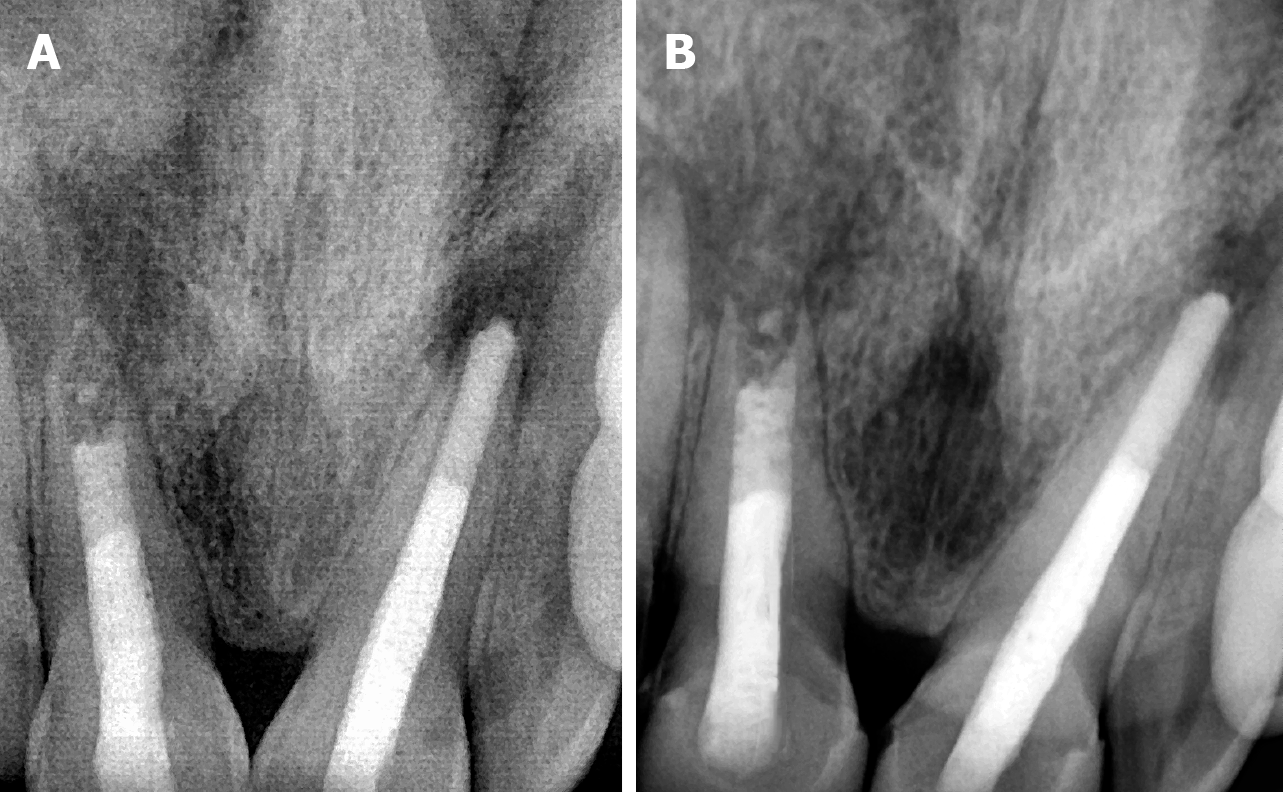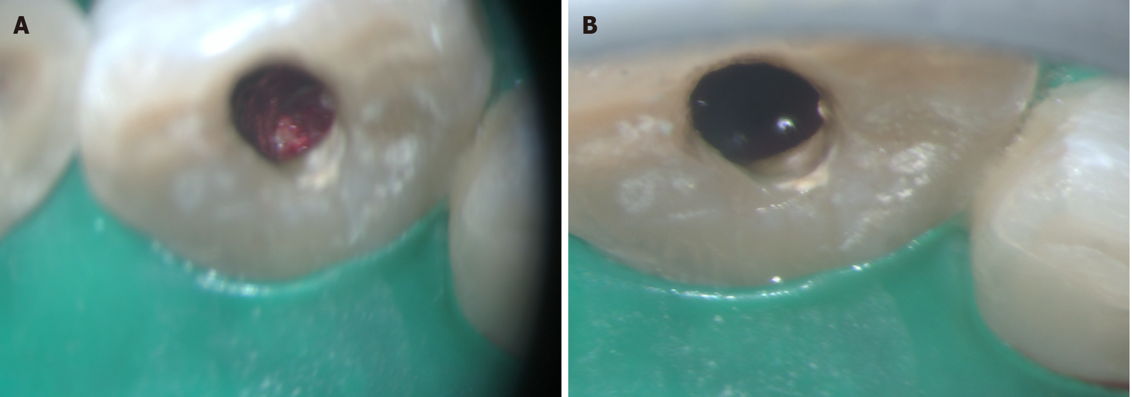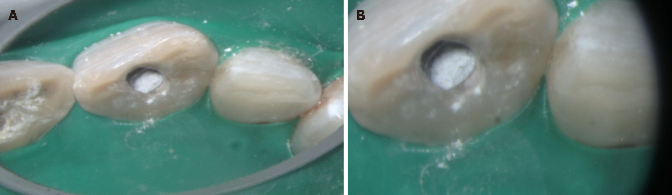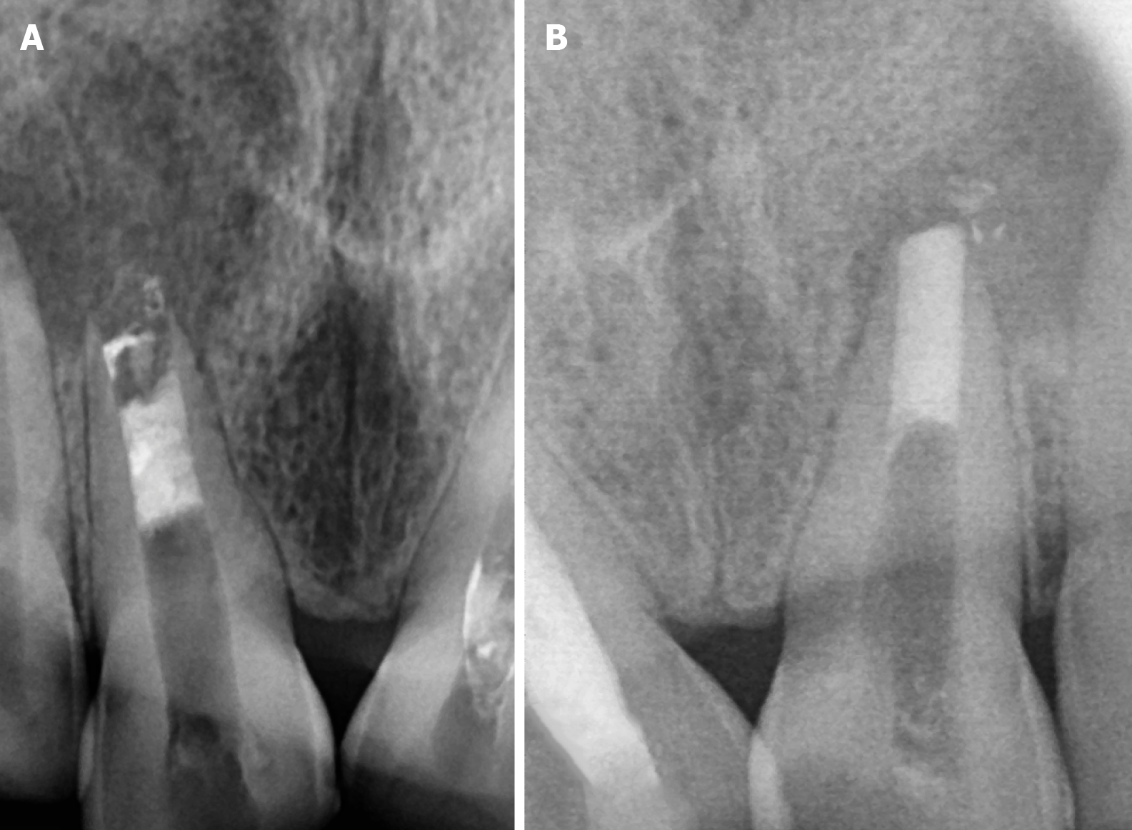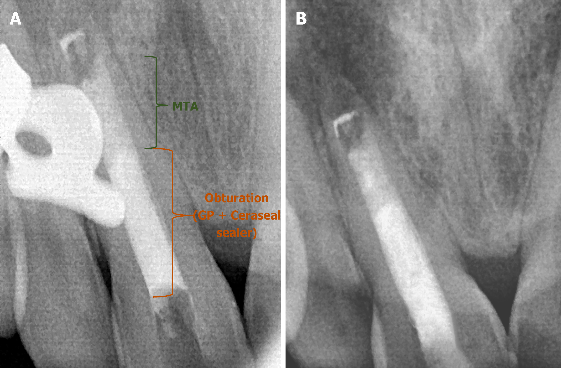 A: Obturation; B: Post-endo composite. MTA: Mineral trioxide aggregate.
