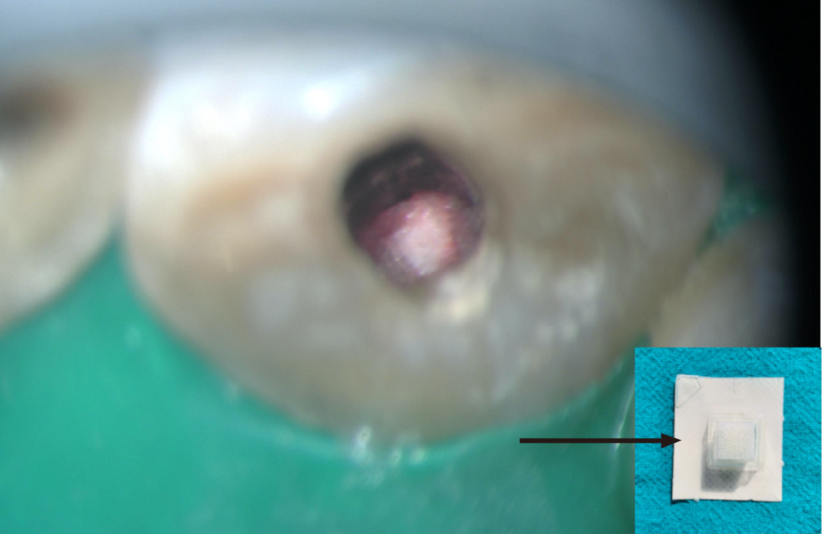 Figure 6 Shows the resorbable collagen sponge in the canal.