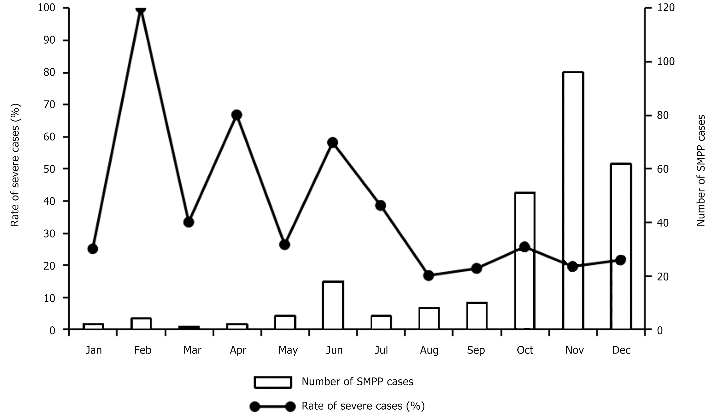 Figure 1 Incidence of severe Mycoplasma pneumoniae pneumonia cases registered in Baoding hospital in 2023.