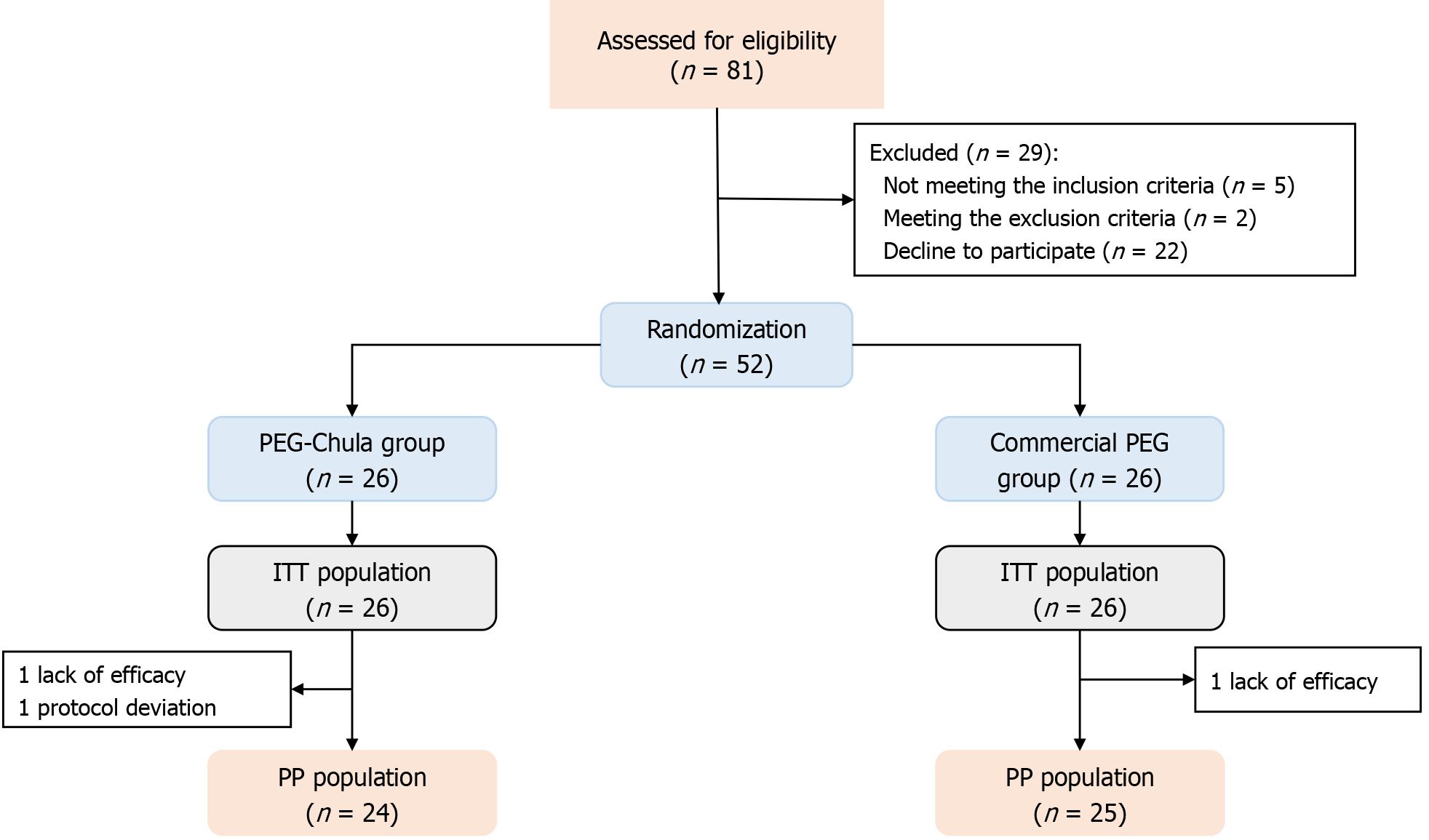ITT: Intention-to-treat; PEG: Polyethylene glycol; PP: Per-protocol.