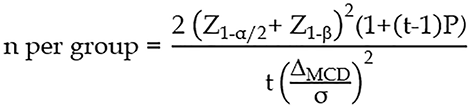 The number of participants in this study was calculated based on the repeated measures design formula.