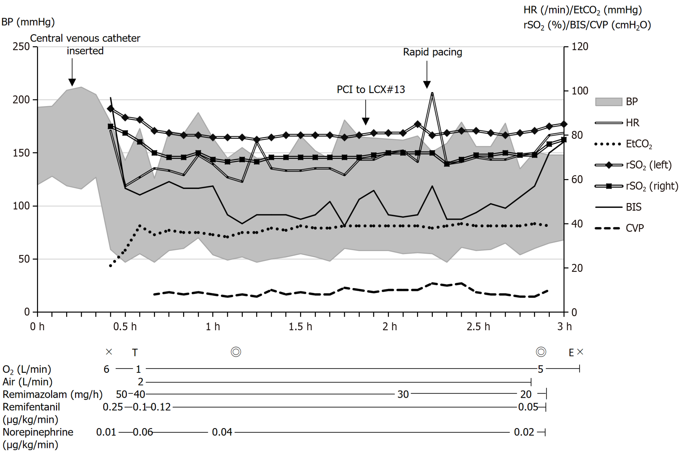 Figure 2 Anesthetic record for transcatheter aortic valve implantation.