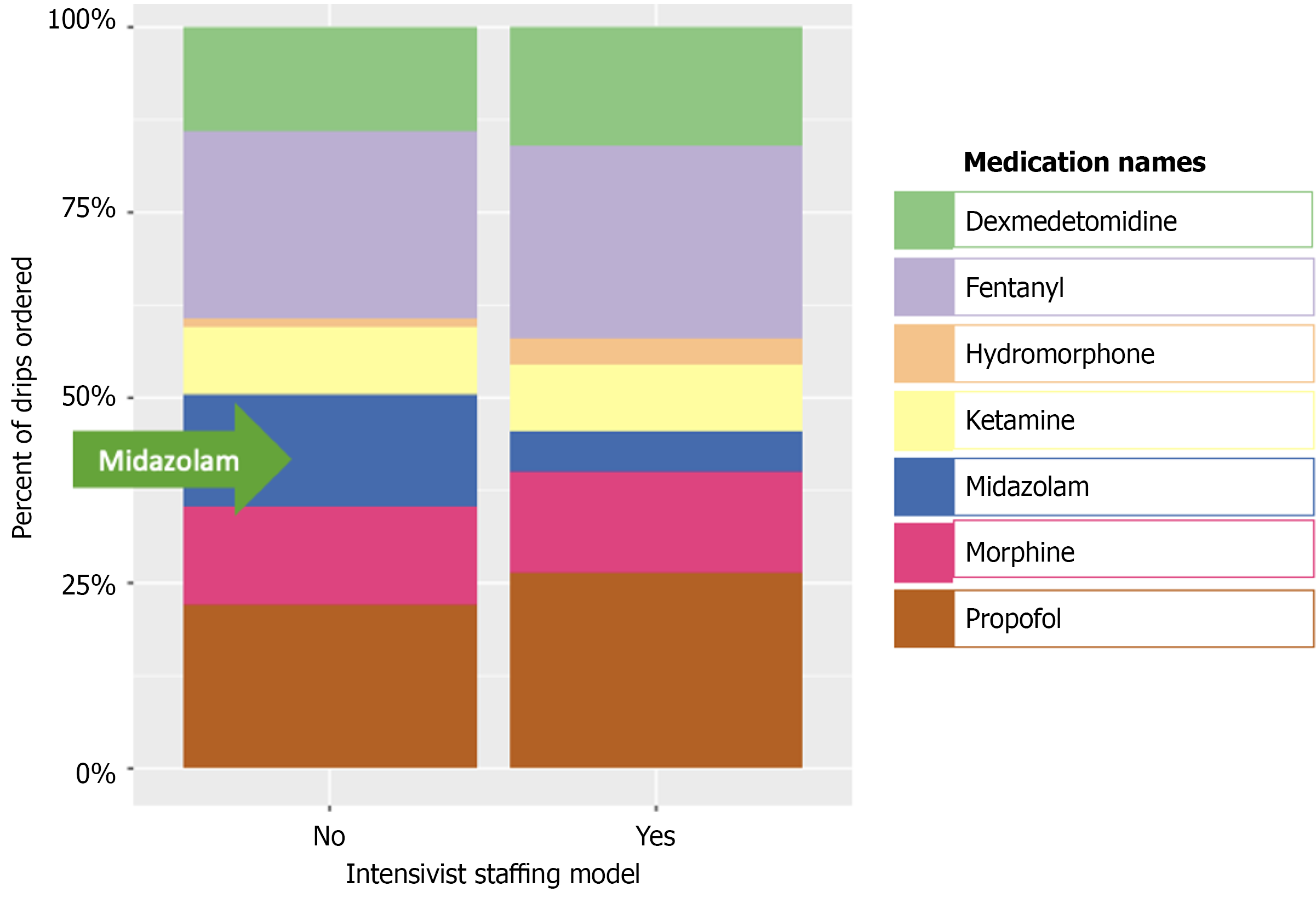 Figure 2 Proportion of sedatives ordered by intensivists vs non-intensivists.