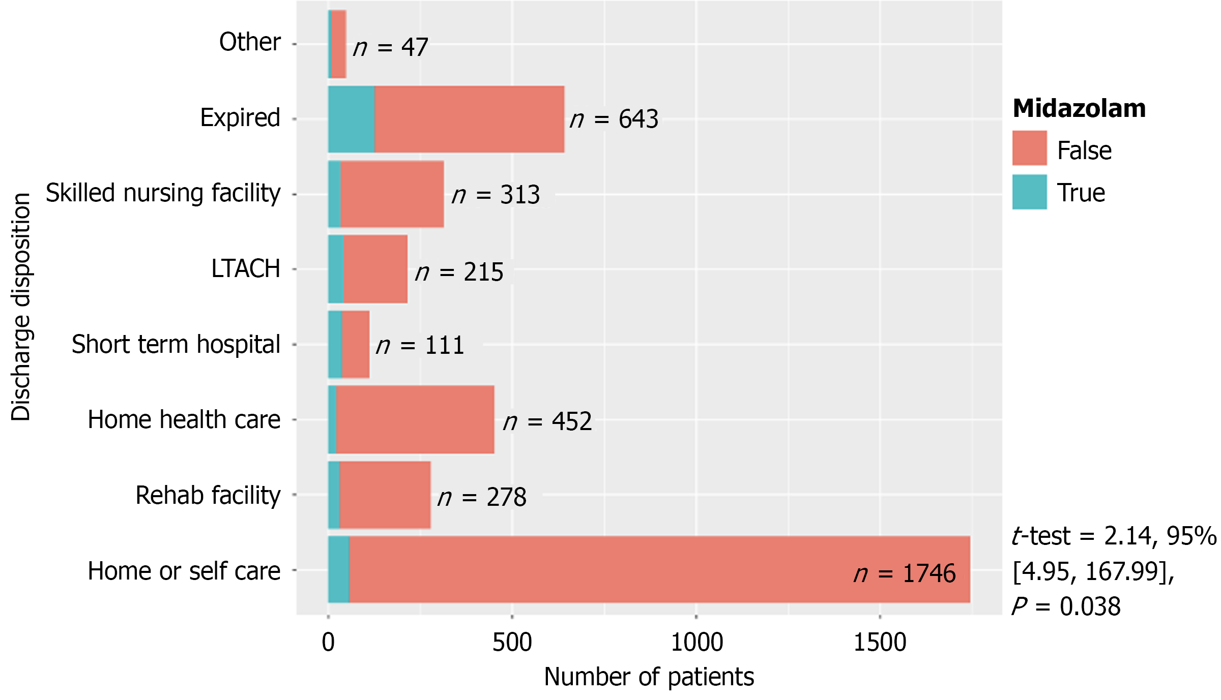 Figure 3 Discharge disposition with midazolam use (n = 3805).