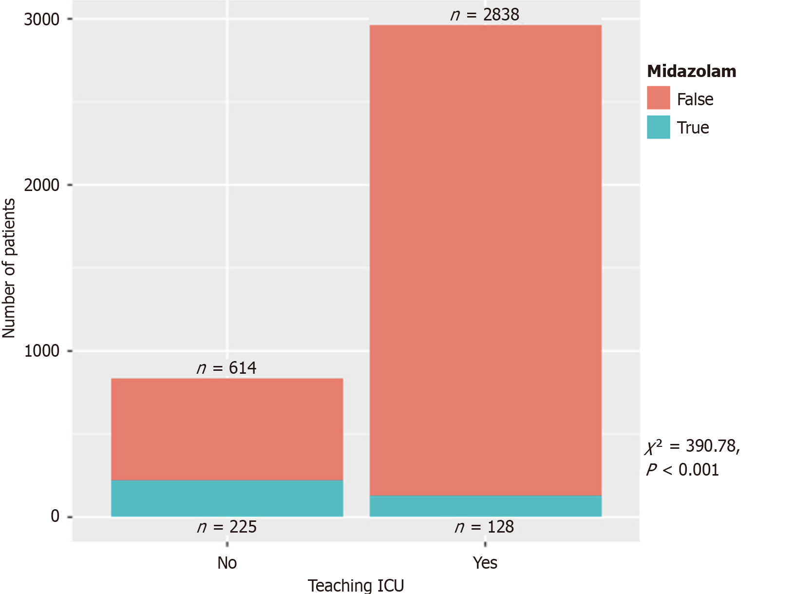 Figure 4 Association of midazolam use and teaching intensive care unit.