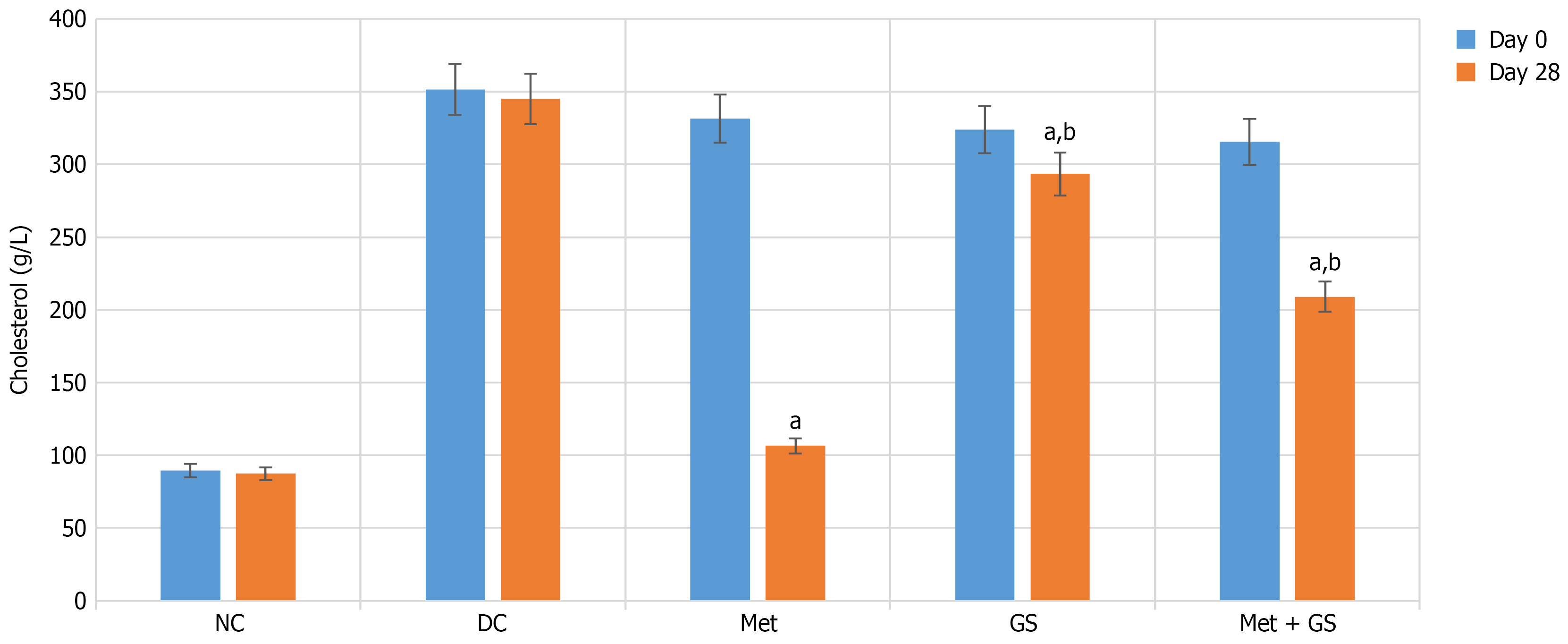 Figure 3 Cholesterol (g/L) at day 0 and day 28.