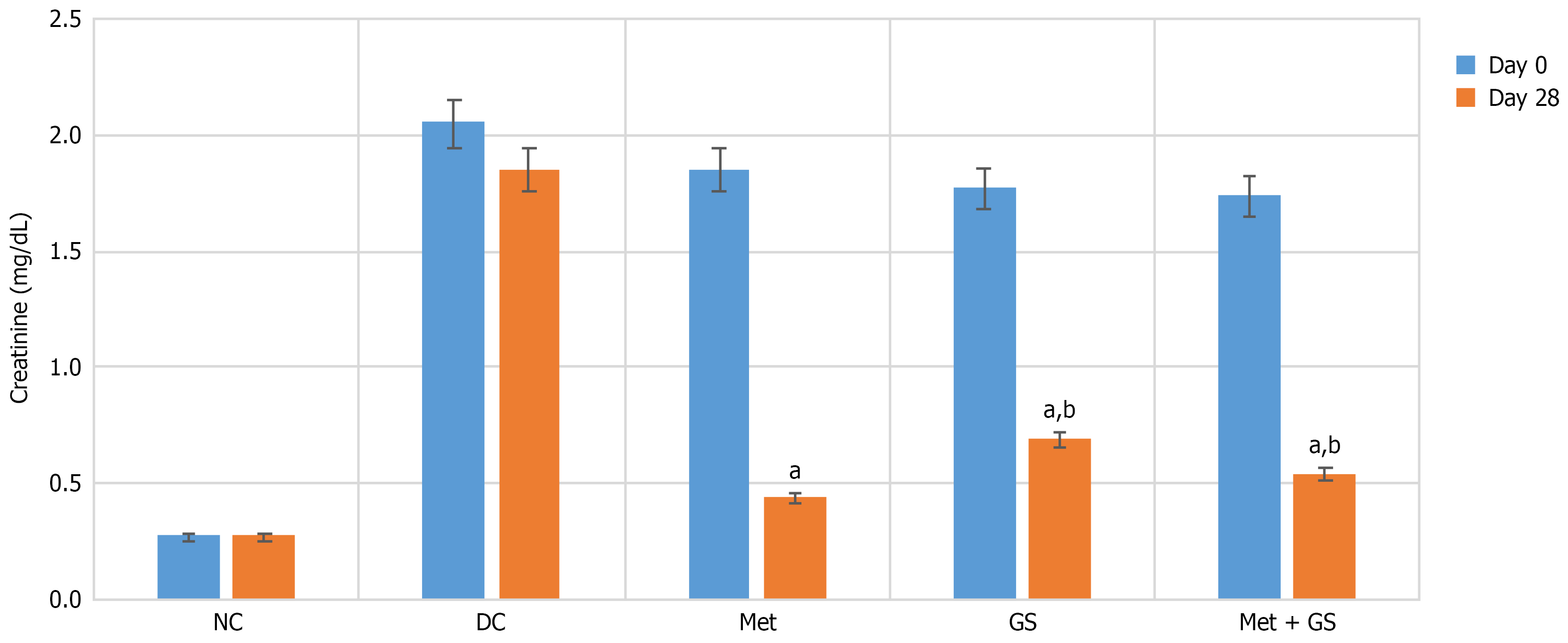 Figure 4 Creatinine (mg/dL) at day 0 and day 28.