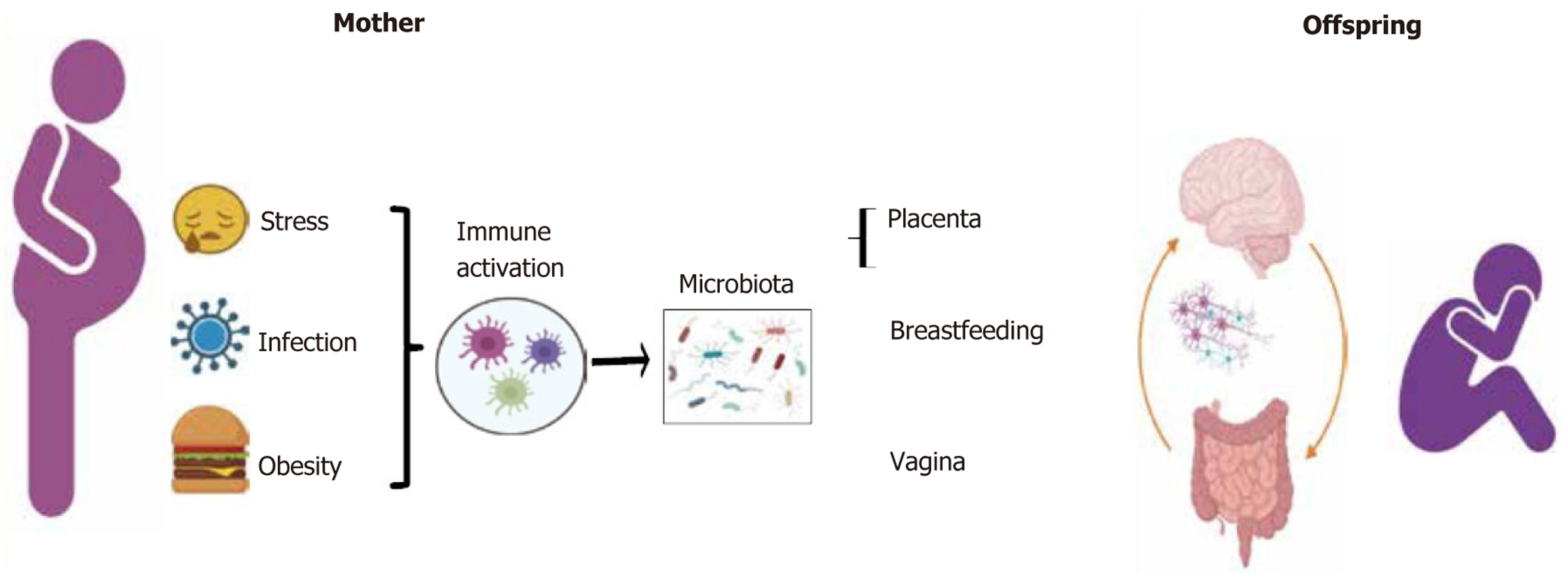 Figure 3 The intestinal microbiota is affected by adverse factors experienced by the mother during pregnancy.