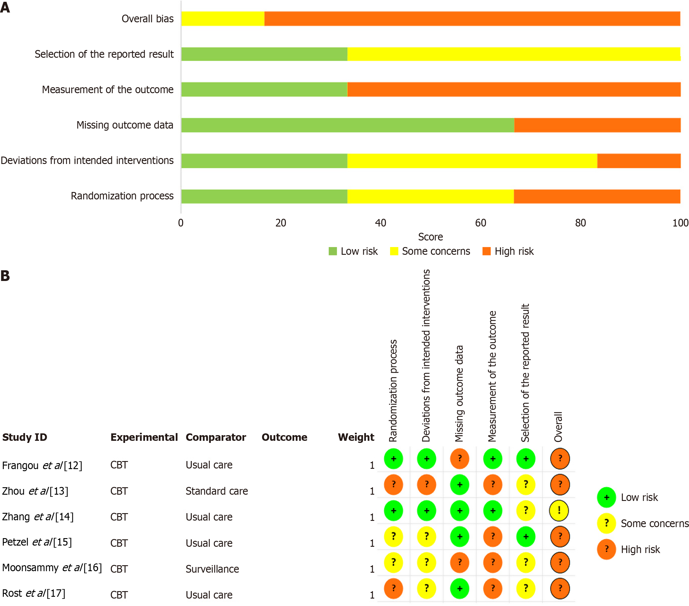 0 tool. A: Risk of bias graph; B: Risk of bias summary. CBT: Cognitive behavioral therapy.