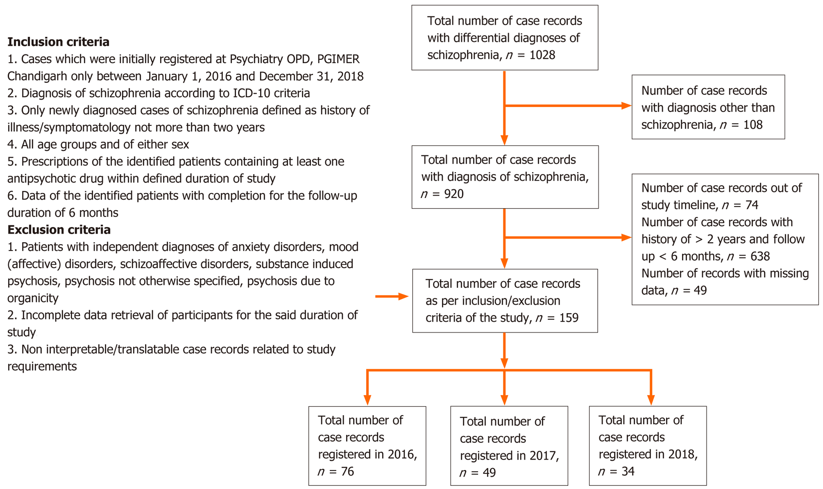 A total of 159 patients were included in study. OPD: Out Patient Department; PGIMER: Post Graduate Institute of Medical Education and Research; ICD: International Classification of Diseases.