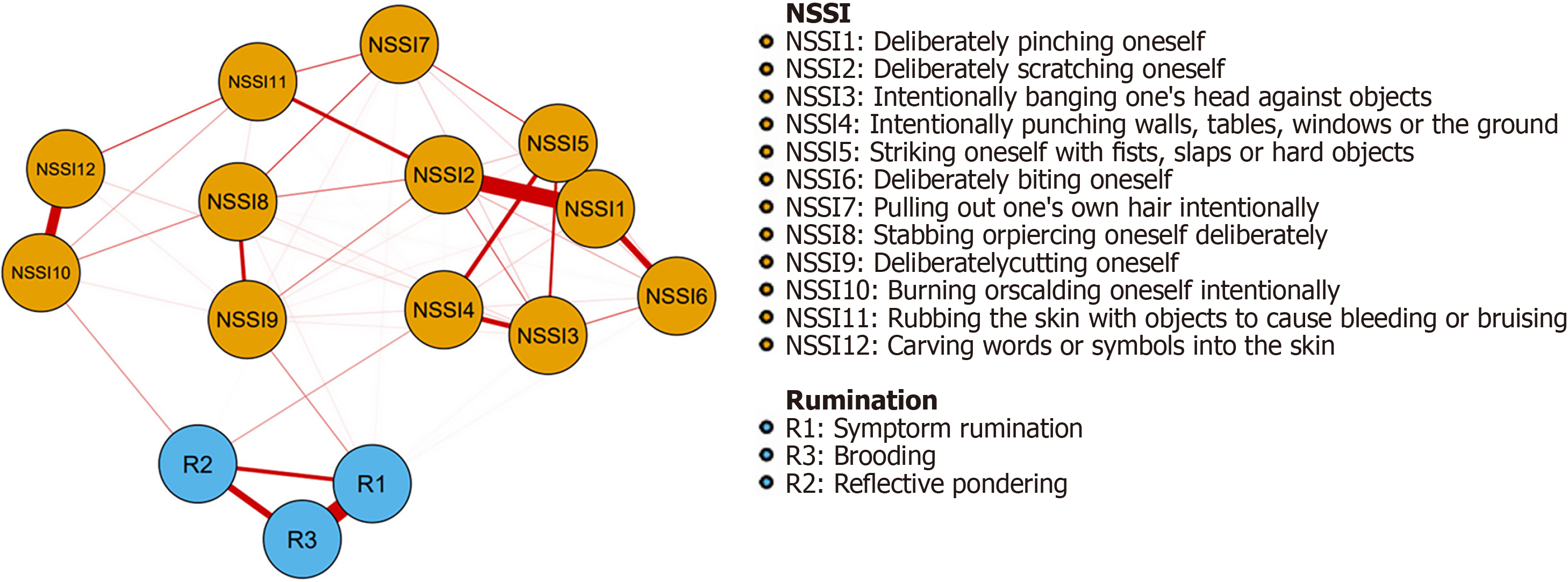 - Citation: Zhang FF, Guo R, Chen SL, Yang W, Liang XL, Ma MF. Network perspective on rumination and non-suicidal self-injury among adolescents with depressive disorders. World J Psychiatry 2026; 16(1): 113130